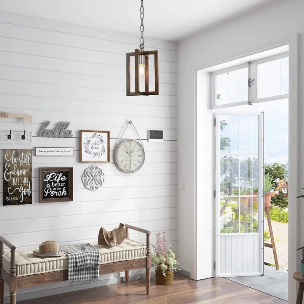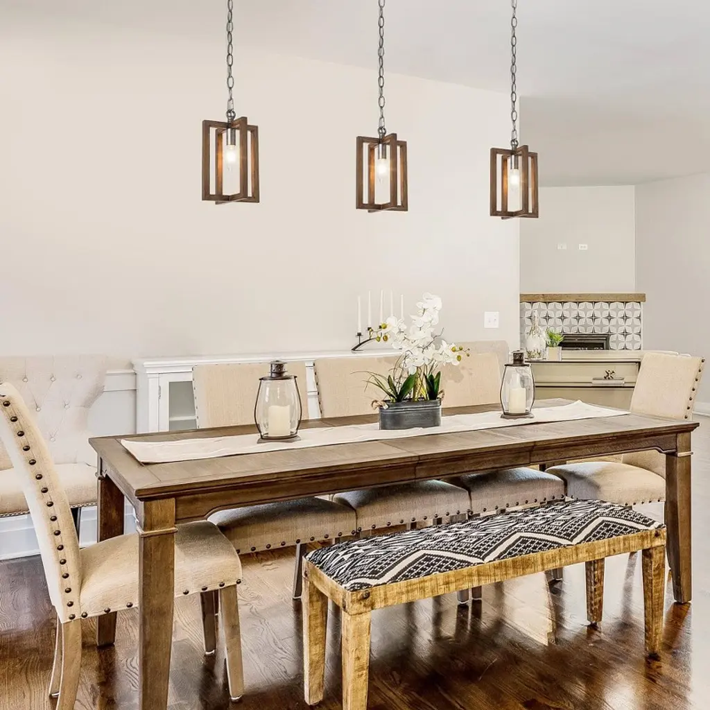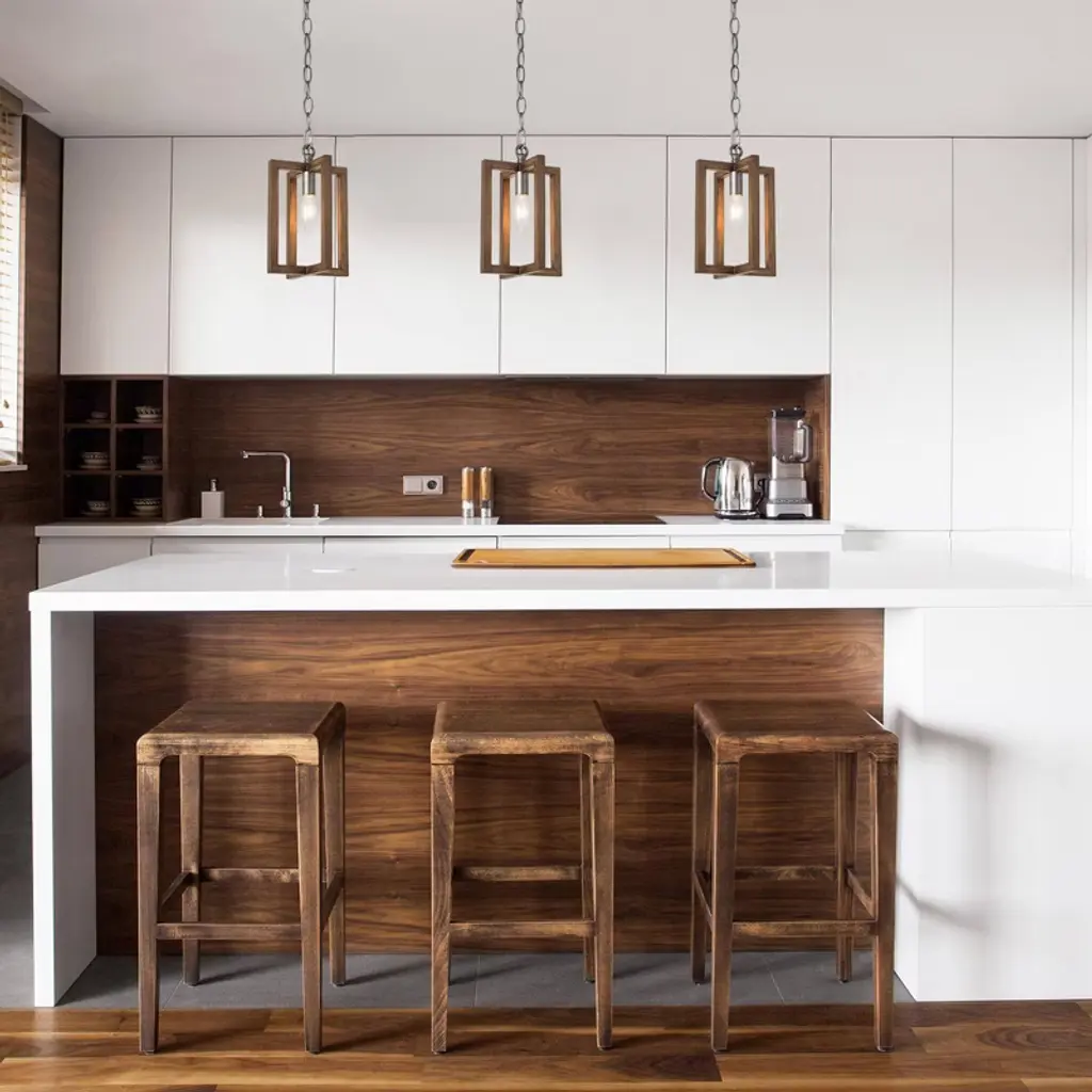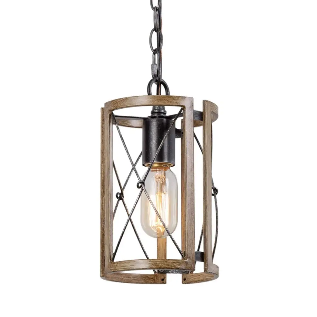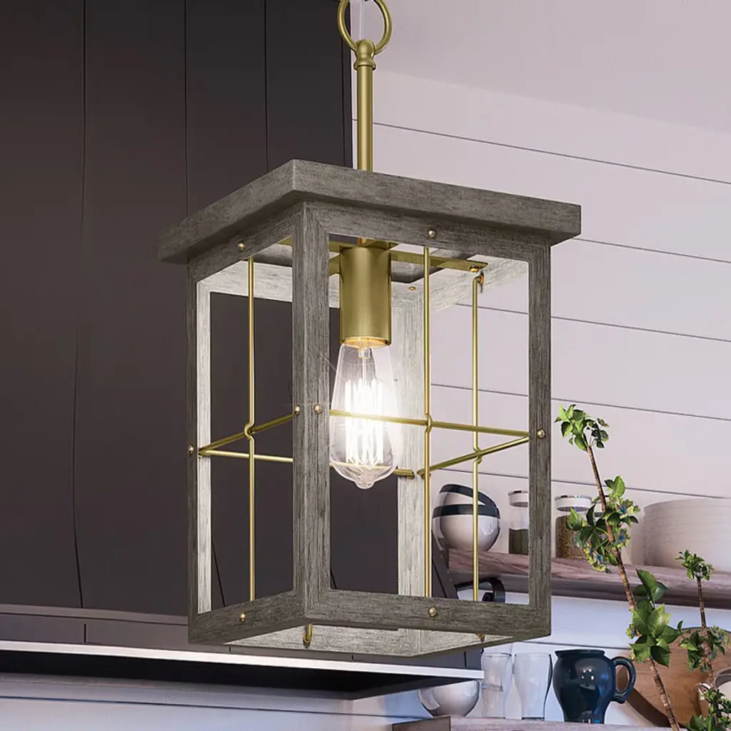 Make a good first impression with this gorgeous one-light vintage geometric mini kitchen island pendant lighting fixture. Bringing a sweet dose of rustic and vintage charm, it offers a wood-tone accent by hand-painted and antique brushed silver finish candelabra bulb base. Framed within two square rings to create a strong sense of three-dimensional.