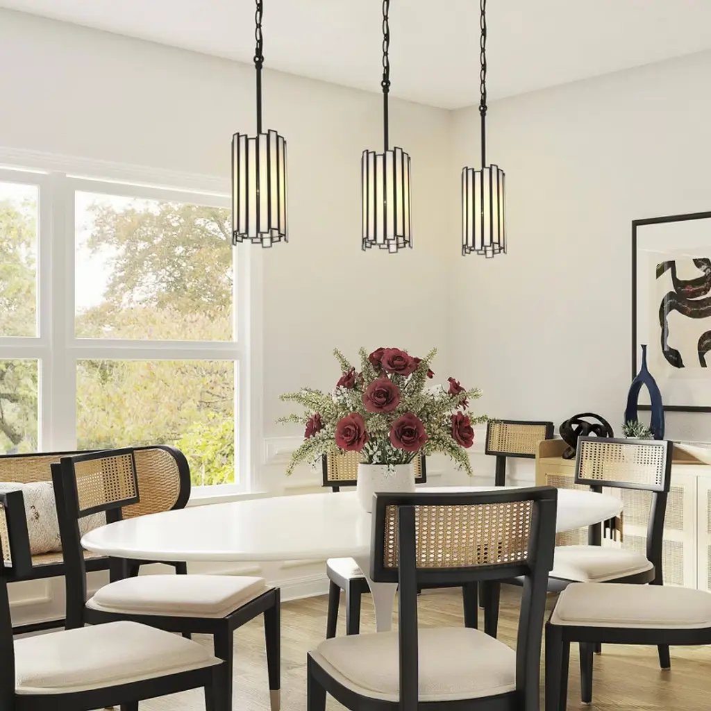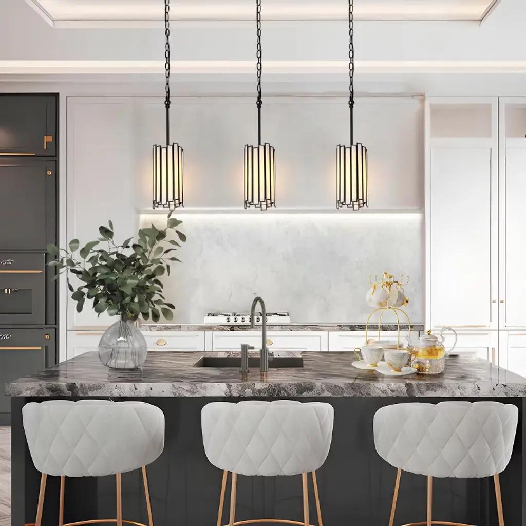 This Hemaaolay collection from LNC offers a wide variety of lighting fixtures with interlaced golden white Hemaaolay pieces in drum lantern shapes forming a circular shade. All are designed to cast understated luxury and sophisticated modern charm to put in modern, transitional, and farmhouse-style home decor and spaces. Made from premium matte black metal and white art glass, this modern black chandelier features a metal frame surrounded by shimmering rectangular-faceted pieces, classic crystal fixture updated with clean symmetrical lines to add a lot of elegance, and the best part is that it is compatible with adjustable hanging length which you can make your own decision according to the ceiling or ornaments. Great as kitchen island pendant, dining room pendant, foyer pendant and coordinate with modern pendant, mini small pendant, bronze pendant, glass pendant, and LED pendant to apply to the back patio, entryway, living room any home places you like. Upgrade your home with our captivating fixture today!