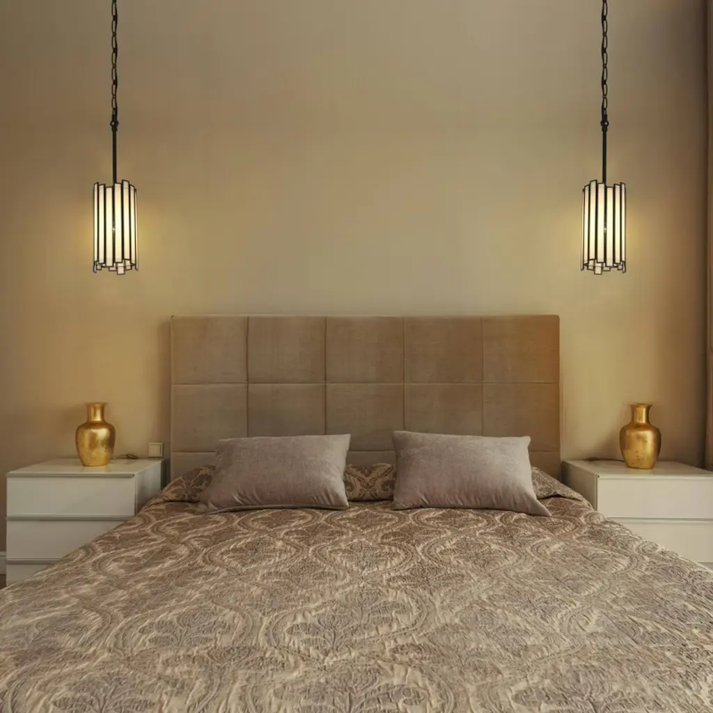 Lnc Hemaaolay 1-lights 4.3" Modern Cylinder Mini Pendant Lights, Matte Black And White Tiffany Glass