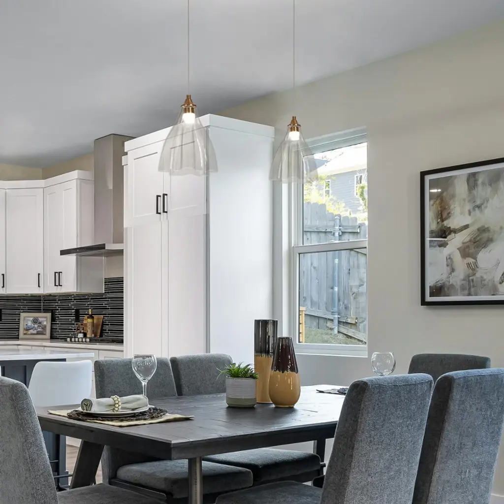 The LNC Luxury Cluster Glass Pendant from the Juanshin collection showcases a delicate, flower-like silhouette crafted from a harmonious blend of metal and clear glass. Each hand-shaped shade captures the graceful curves of a blooming flower, bringing an organic elegance to your home. Made of thick handmade glass and paired with a built-in soft LED light source, it casts a warm, diffused glow across the space. The crystal-clear glass shades create an inviting atmosphere while infusing a touch of nature¡¯s beauty into your interior. Perfect for modern, contemporary, or traditional settings such as living rooms, dining areas, kitchens, bedrooms, and entryways. More than illumination, this piece adds a poetic charm that transforms your space into a warm, welcoming retreat.