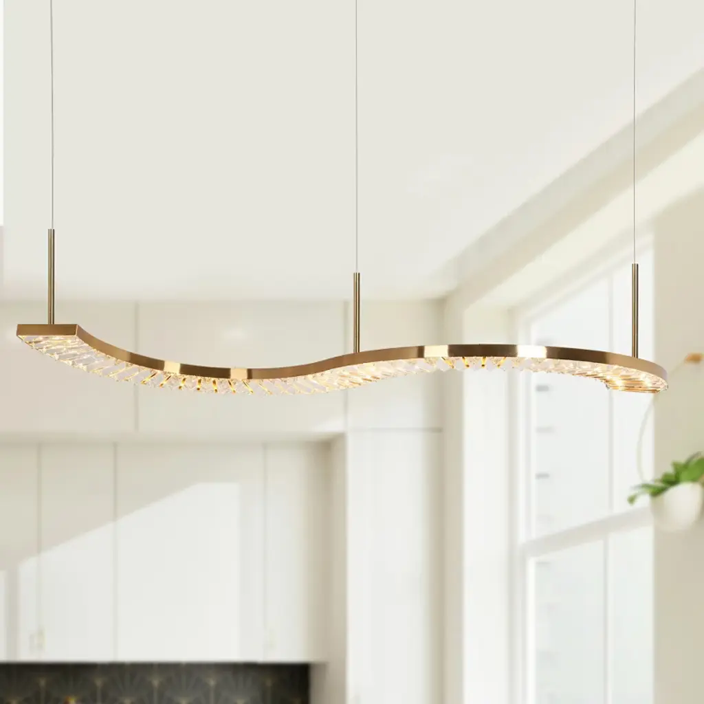 The LNC Luxury Unique LED Crystal Island Pendant Light features stunning crystal elements cast within a gracefully curved metal frame, achieving a luxurious and sensuous texture that defines the designer Adora collection. The minimalist geometric form serves as the perfect canvas for the sparkling crystals, reminiscent of a modern master architect¡¯s work. Its warm, ambient glow is both moody and atmospheric, creating an unforgettable statement. More than just lighting, it brings an artful radiance that transforms your home into a place of elegance and inspiration.