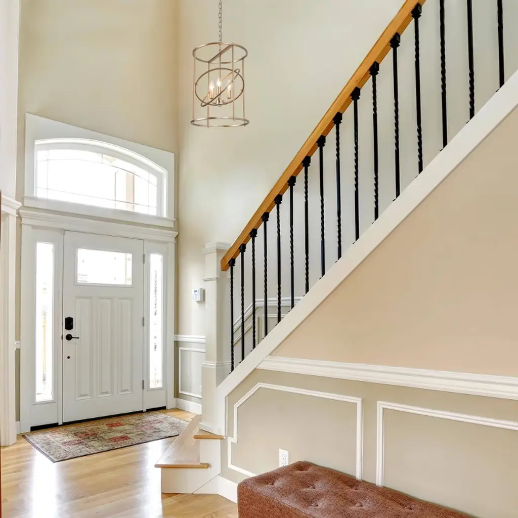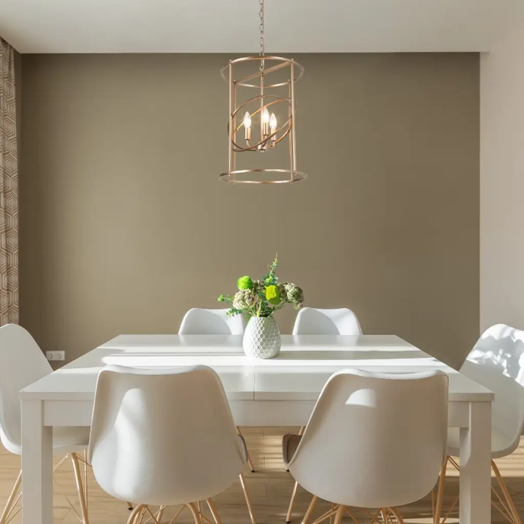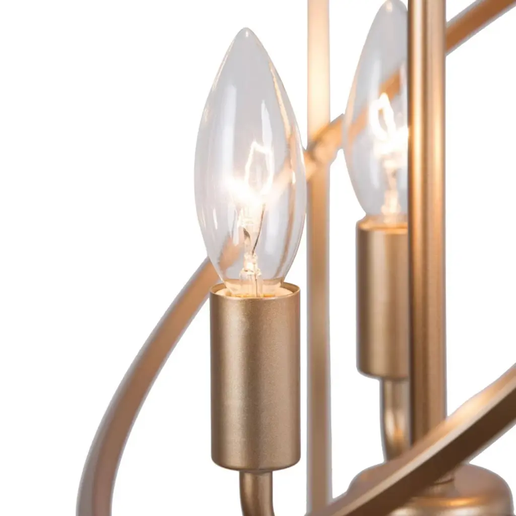 This 3-light modern contemporary gold lantern cage chandelier lighting fixture has a minimalism linear and geometric design, paired with two rounds, reflecting the modern and elegant atmosphere. This modern chandelier light will bring a new look to your home. The combination of straight lines and curves, soft yet modern and simple, is like a distinctive sign in your house. Three candlestick bulbs emit warm light through the hollow lantern cage, forming creative shadows, creating interest for your dining room, kitchen island, foyers, living room, and bedroom.