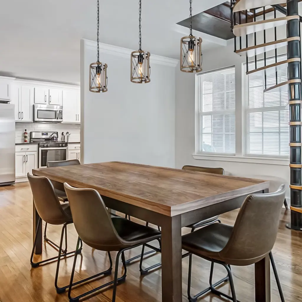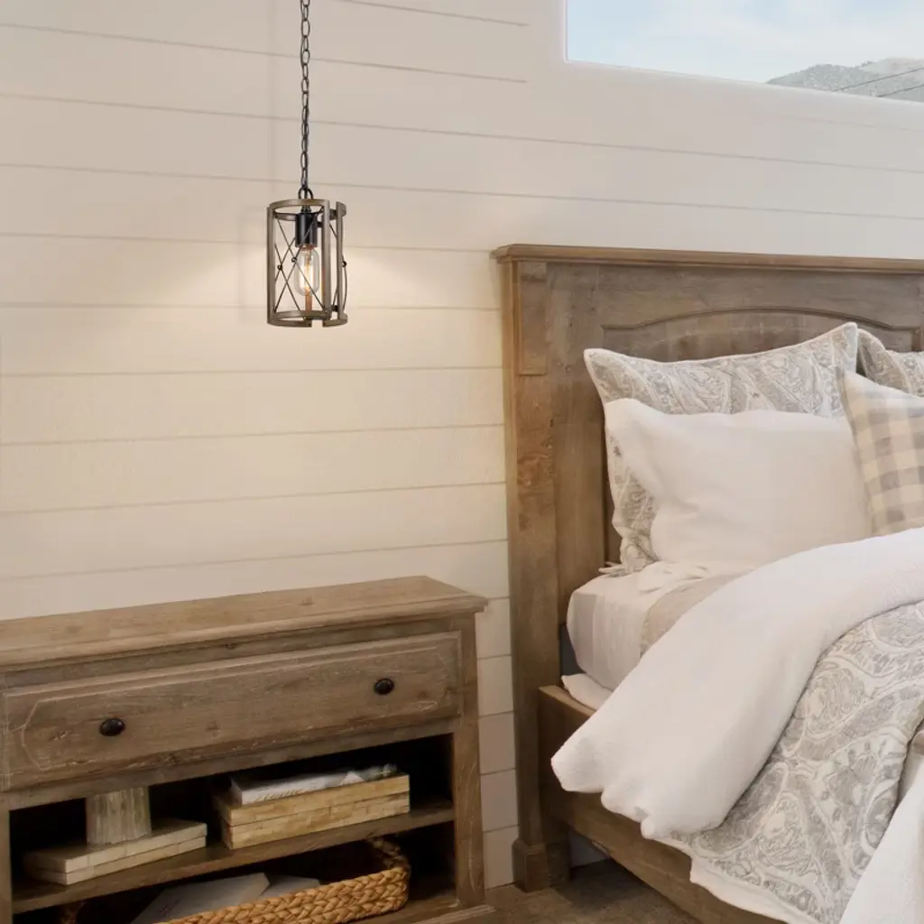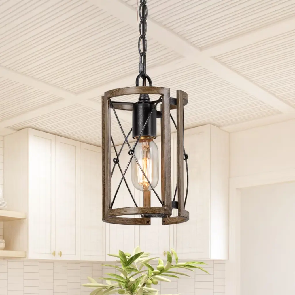 The LNC Martin collection creates a striking rustic and farmhouse look with a wide range of finely crafted details and grooves that pay homage to the classic design. The combination of wood tone and black finishes adds rustic charm and understated modern farmhouse appeal, making it an ideal lighting fixture for modern, vintage, and farmhouse-style home decor. Whether placed in the kitchen, dining room, bedroom, or foyer, this cage pendant lighting serves as the perfect modern farmhouse lighting piece.