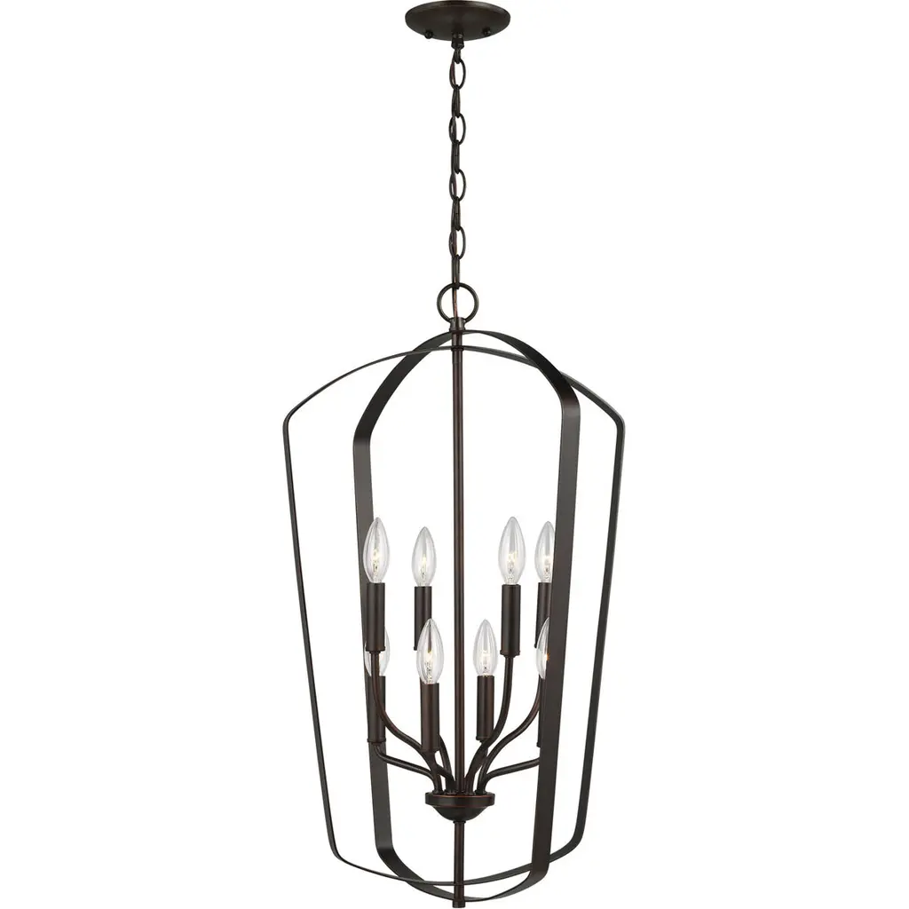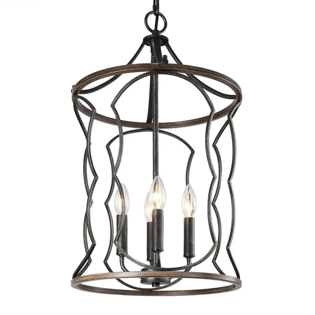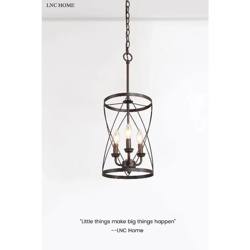As much a work of art as a lighting fixture, hand-forged solid wrought iron frame with a rustic bronze finish, in a shape reminiscent of a geometric cage with two "X" in the middle to connect the top and bottom, the rustic finish brings you a touch of industrial style in somehow. Elegant waved lines and the geometric crisscrossed form add a breezy touch to any space. Hanging alone in the entryway, foyer, or on the side of your kitchen island table multiples in rows for a retro stylish.