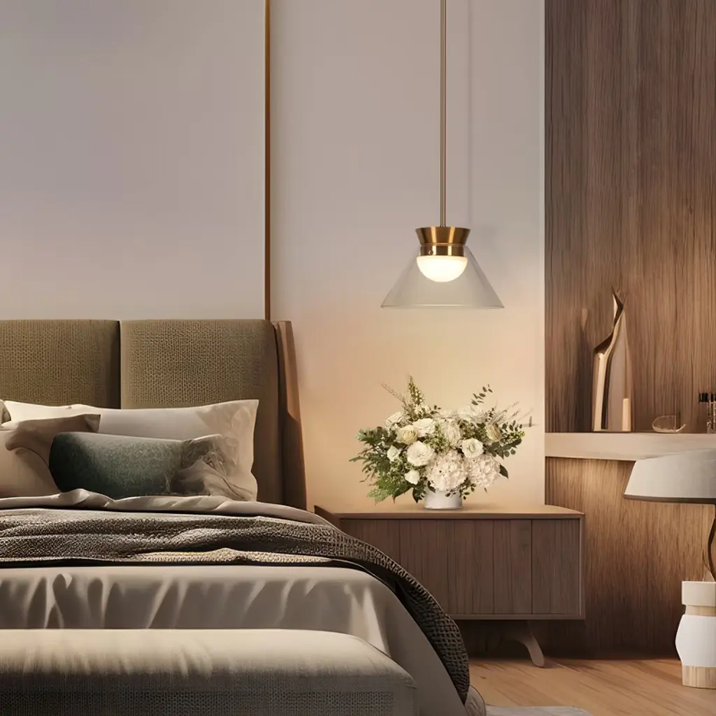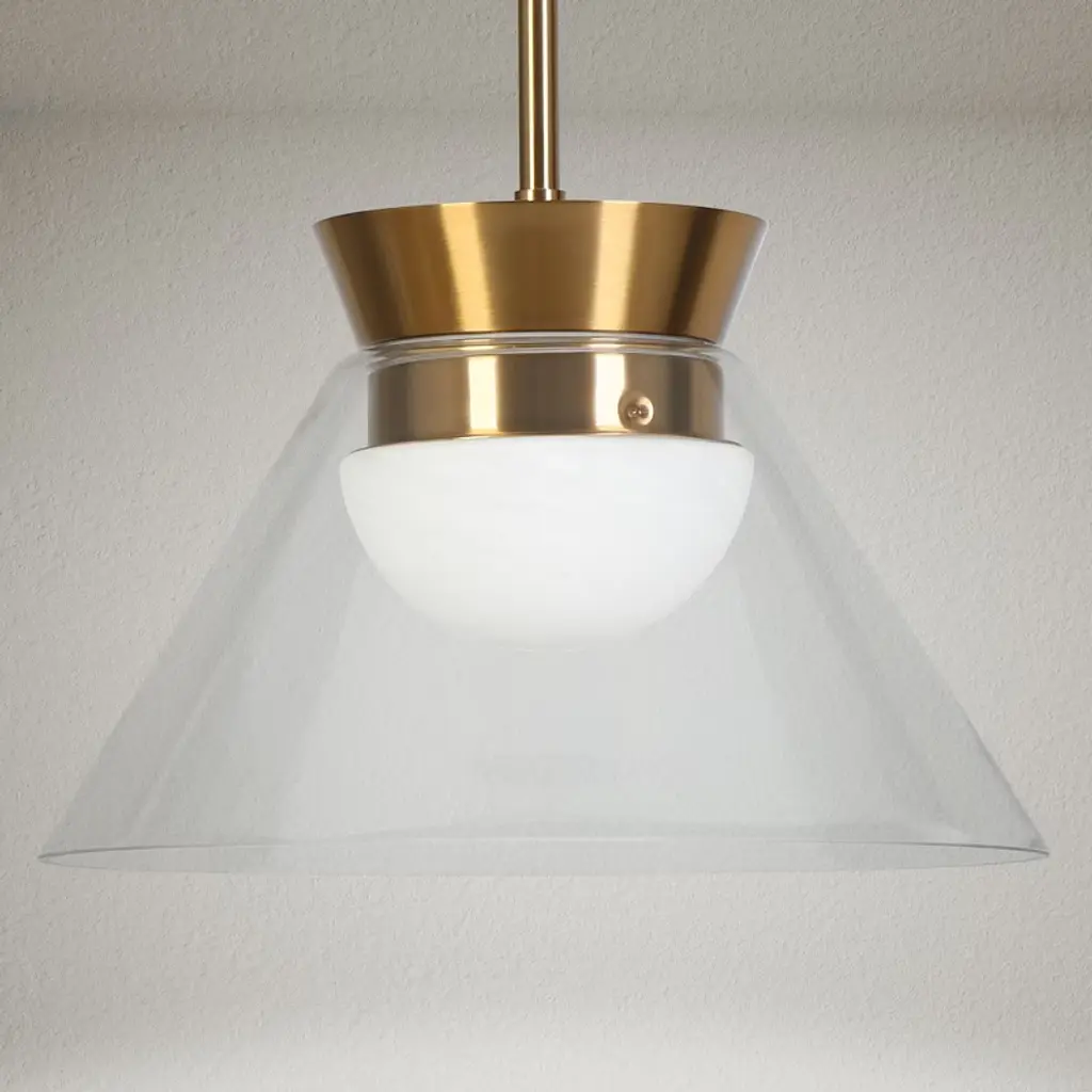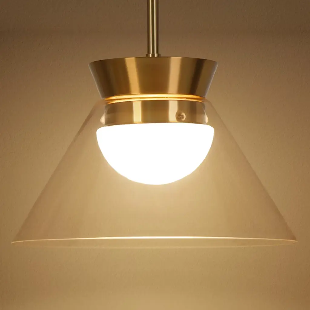 Lnc Orthosting 1-lights 11.8" Modern Cone Luxury Integrated Led Pendant Lights, Polished Gold And Clear Glass