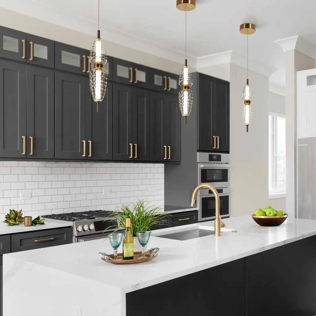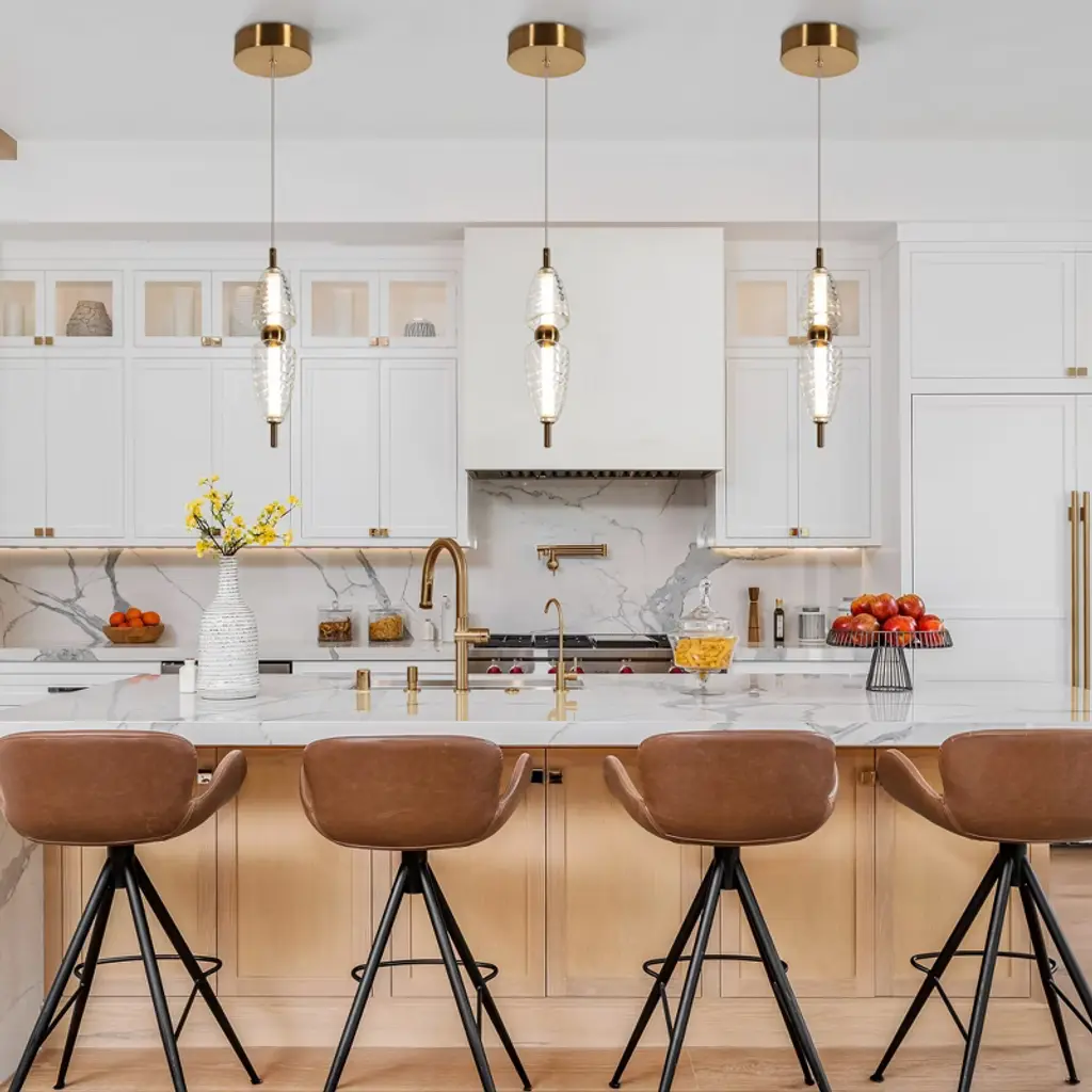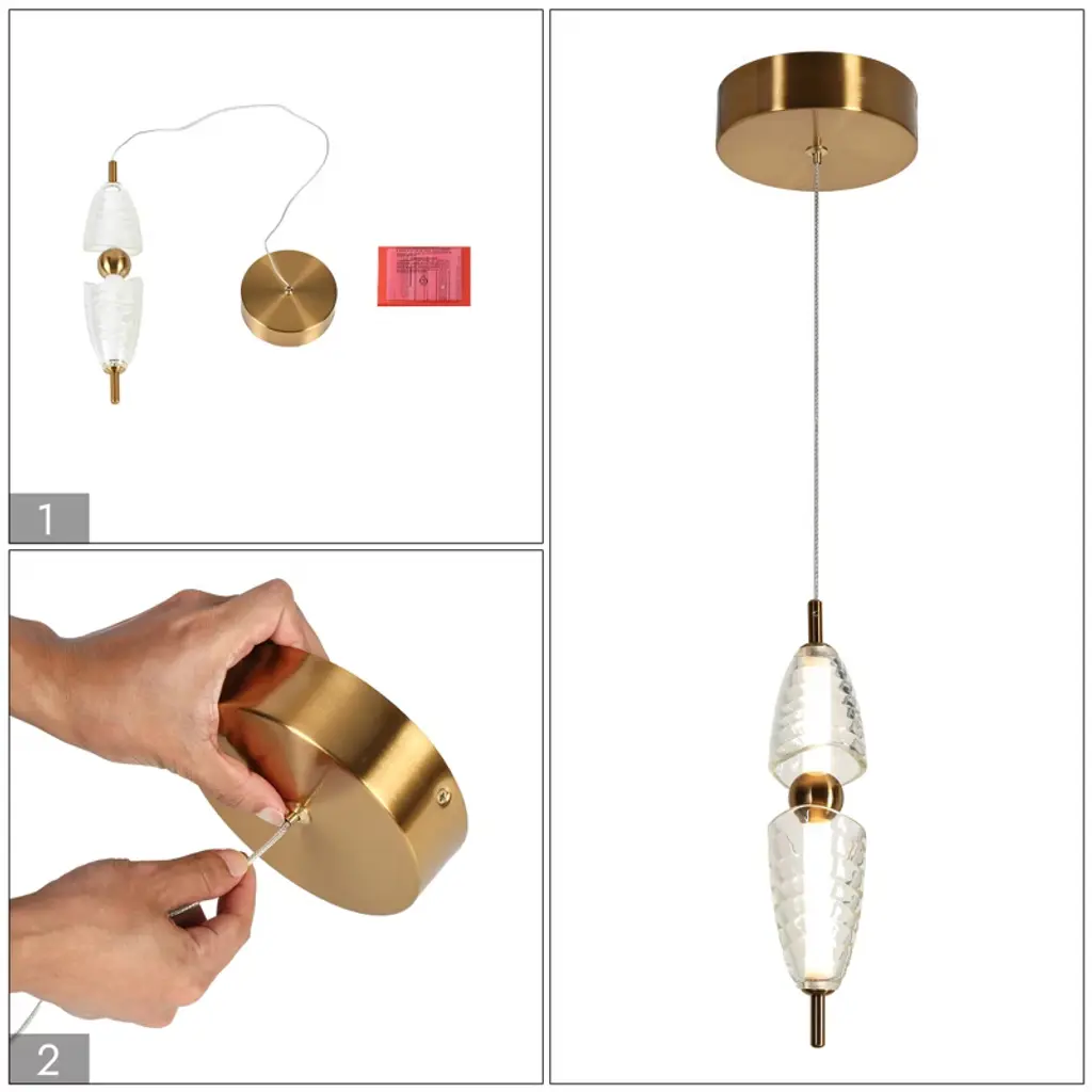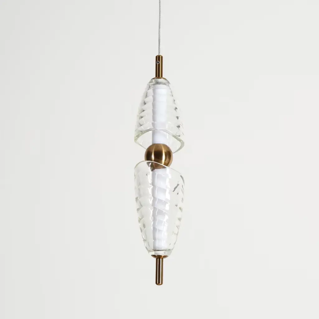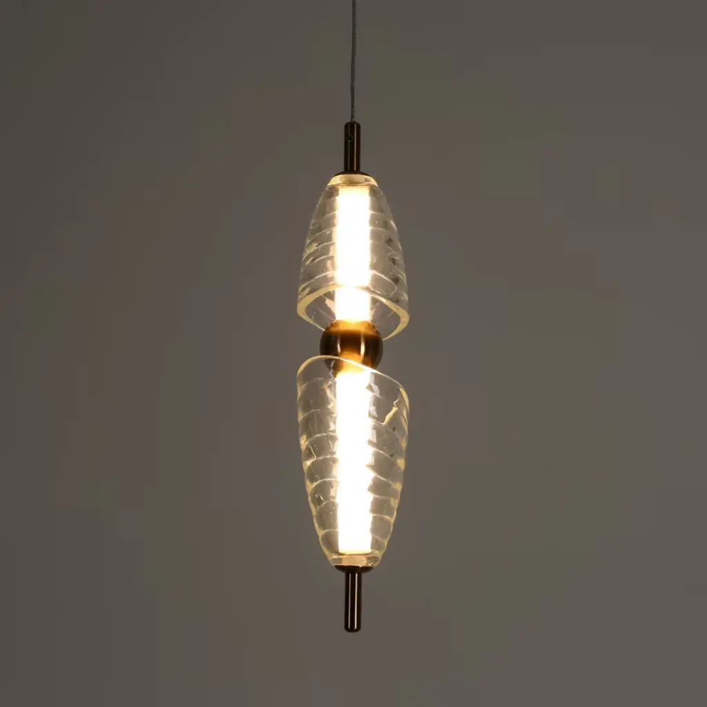 The LNC Luxury Stacked Resin Glass Pendant exudes contemporary elegance, featuring a brass-finished canopy and accents framing two vertically stacked, grooved resin elements in a refined elongated form. The warm LED light shimmers through each sculpted surface, adding texture, depth, and artistry to your lighting. Ideal for modern dining rooms, kitchens, or entryways, this pendant transforms any space into a statement of quiet sophistication,inviting admiration with every glance.