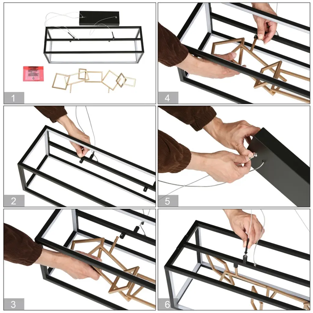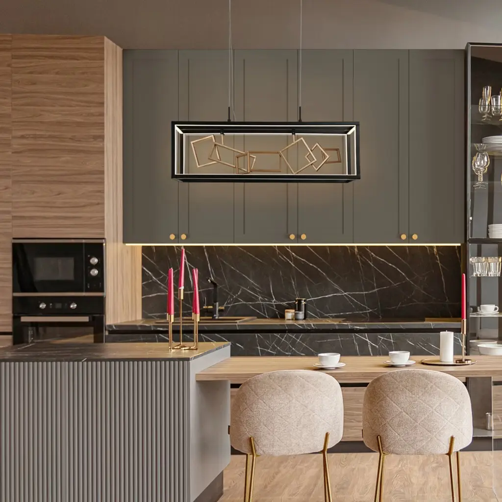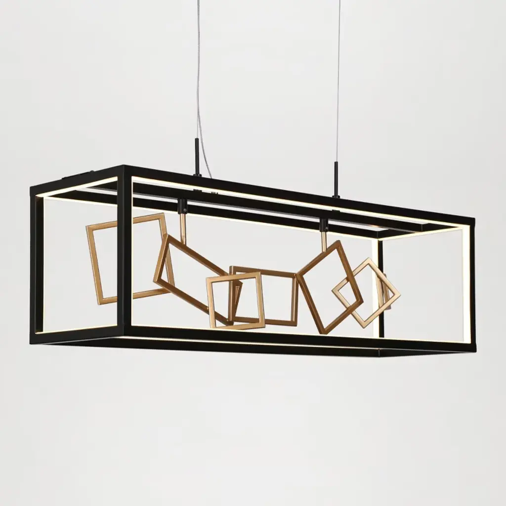 Elevate your kitchen or dining room with our trendsetting LED pendant light black. Featuring a sleek black cuboid frame and striking golden geometry, this fixture epitomizes modern style. With its avant-garde design, it will instantly become the focal point of your space, drawing admiration and compliments from all who enter. Illuminate your home with the captivating charm of the 8-Light Matte Black and Satin Gold Embedded LED Bulb Modern/Contemporary Dry rated Chandelier, and stay ahead of the curve in abstract fashion.