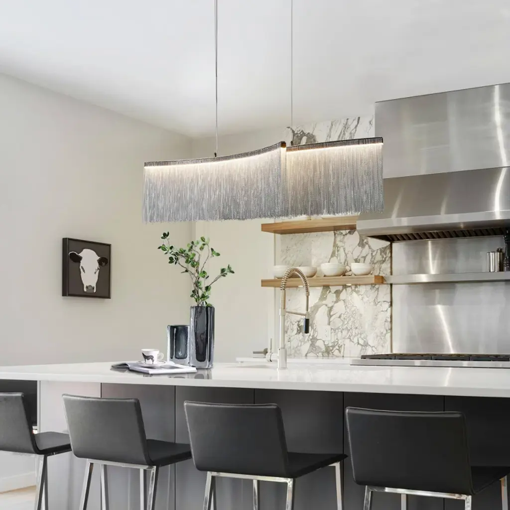 Lnc Siouxfalls 2-lights 49.4" Luxury And Glam Linear Integrated Led Kitchen Island Lights, Silver