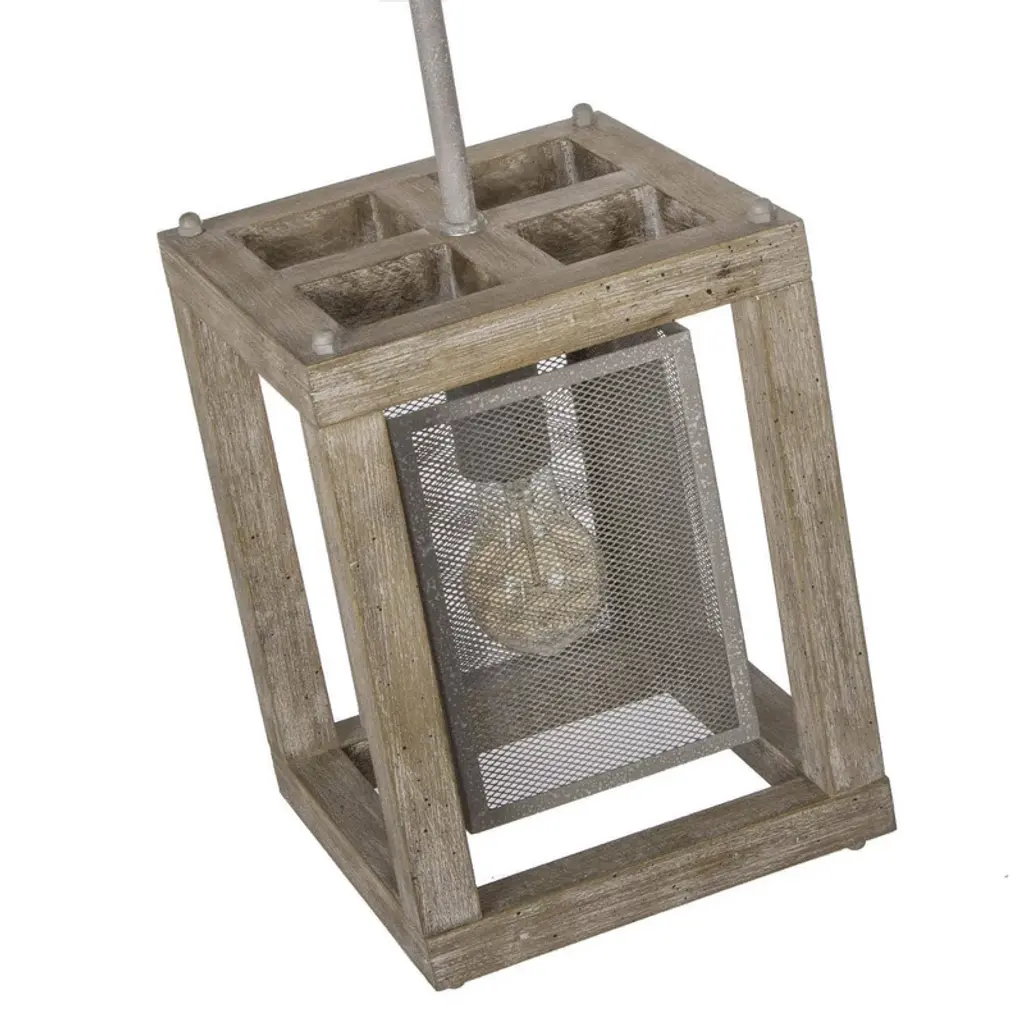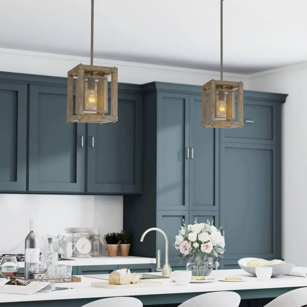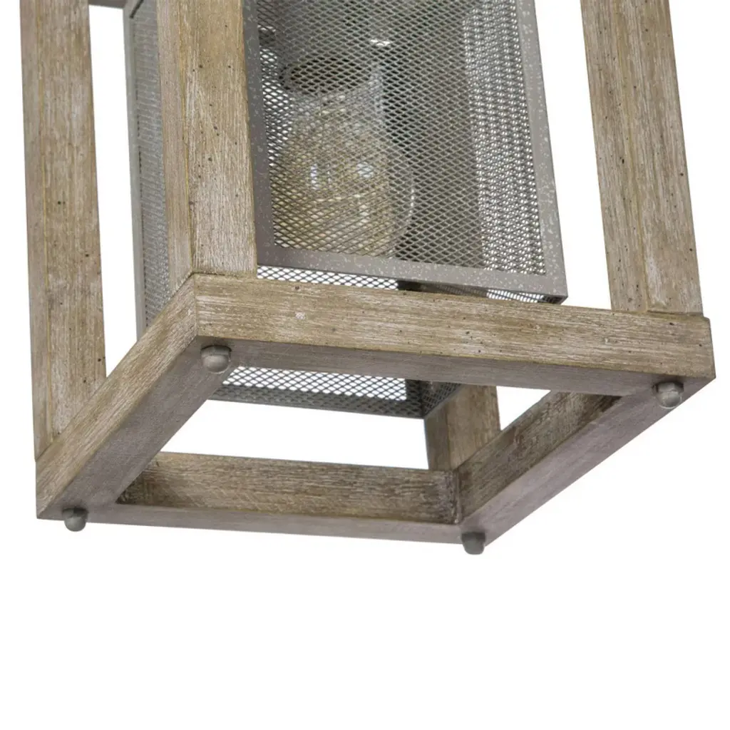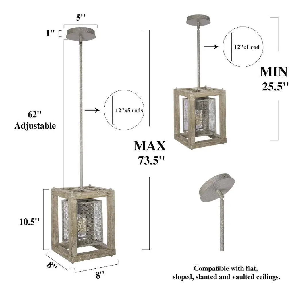 Compact in size but rich in character, this 1-light Mini pendant from LNC Home features a distressed wood cube frame surrounding a metal mesh inner shade. Measuring 8" wide by 10.5" high with an adjustable chain (13.5" to 73.5"), it fits perfectly in kitchens, hallways, or breakfast nooks. From the Timeless Collection, this design pairs natural wood with industrial detail, creating a pendant that feels both handcrafted and versatile. A warm accent on its own or a stylish addition in multiples, it adds texture and farmhouse charm to intimate spaces. Bulb not included.