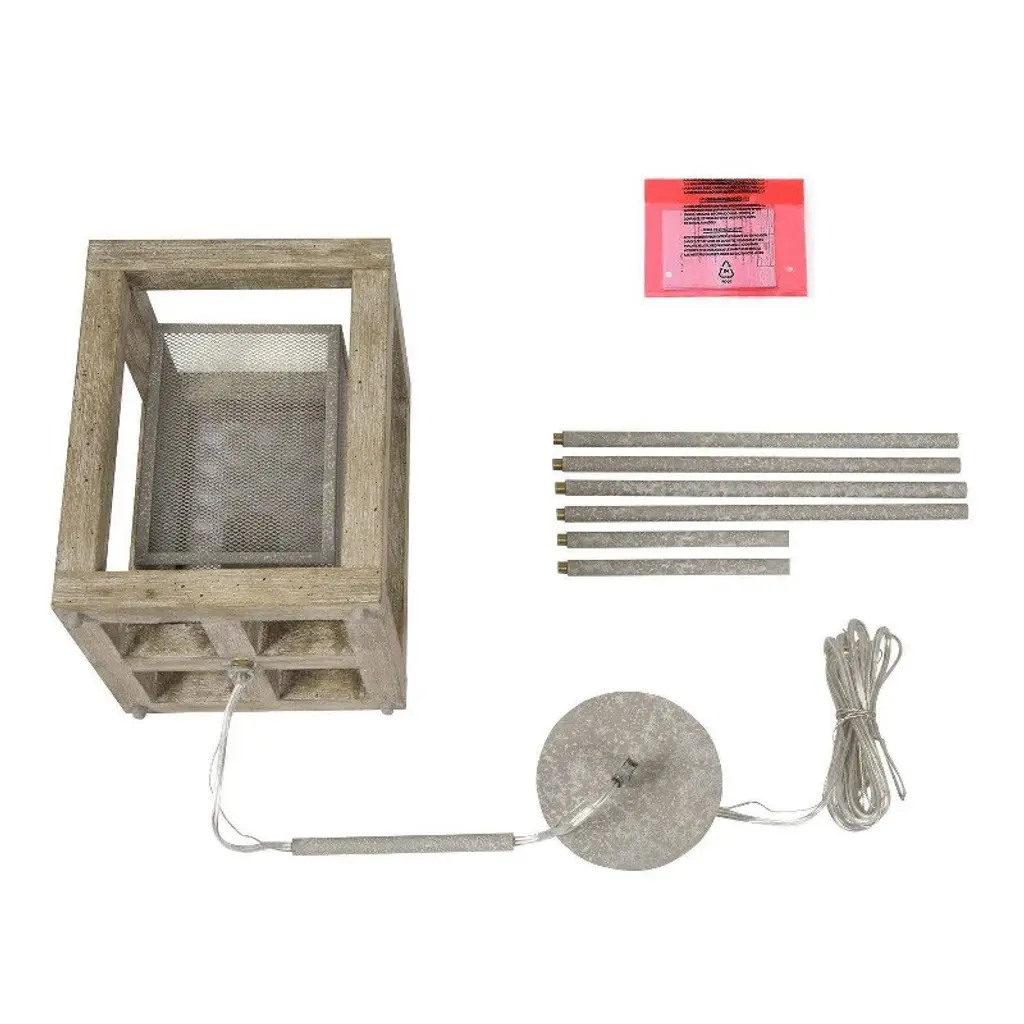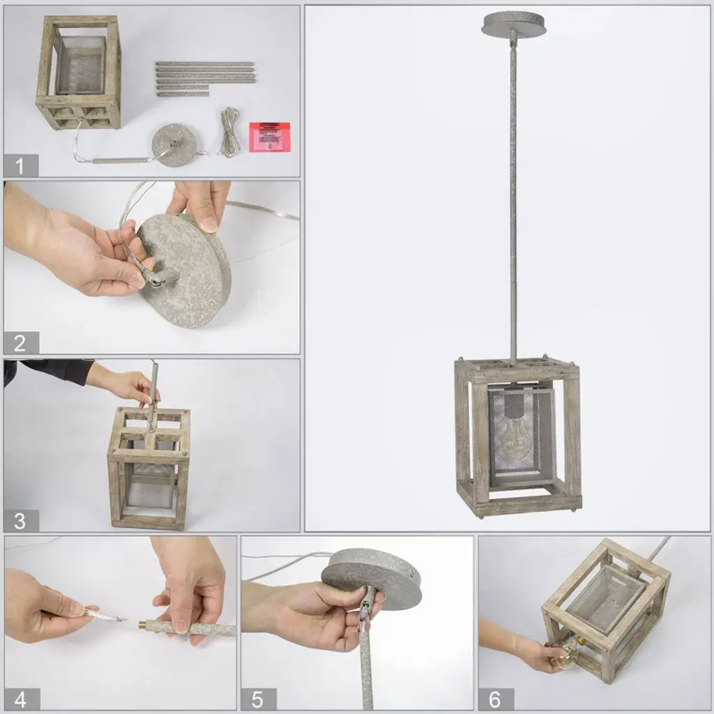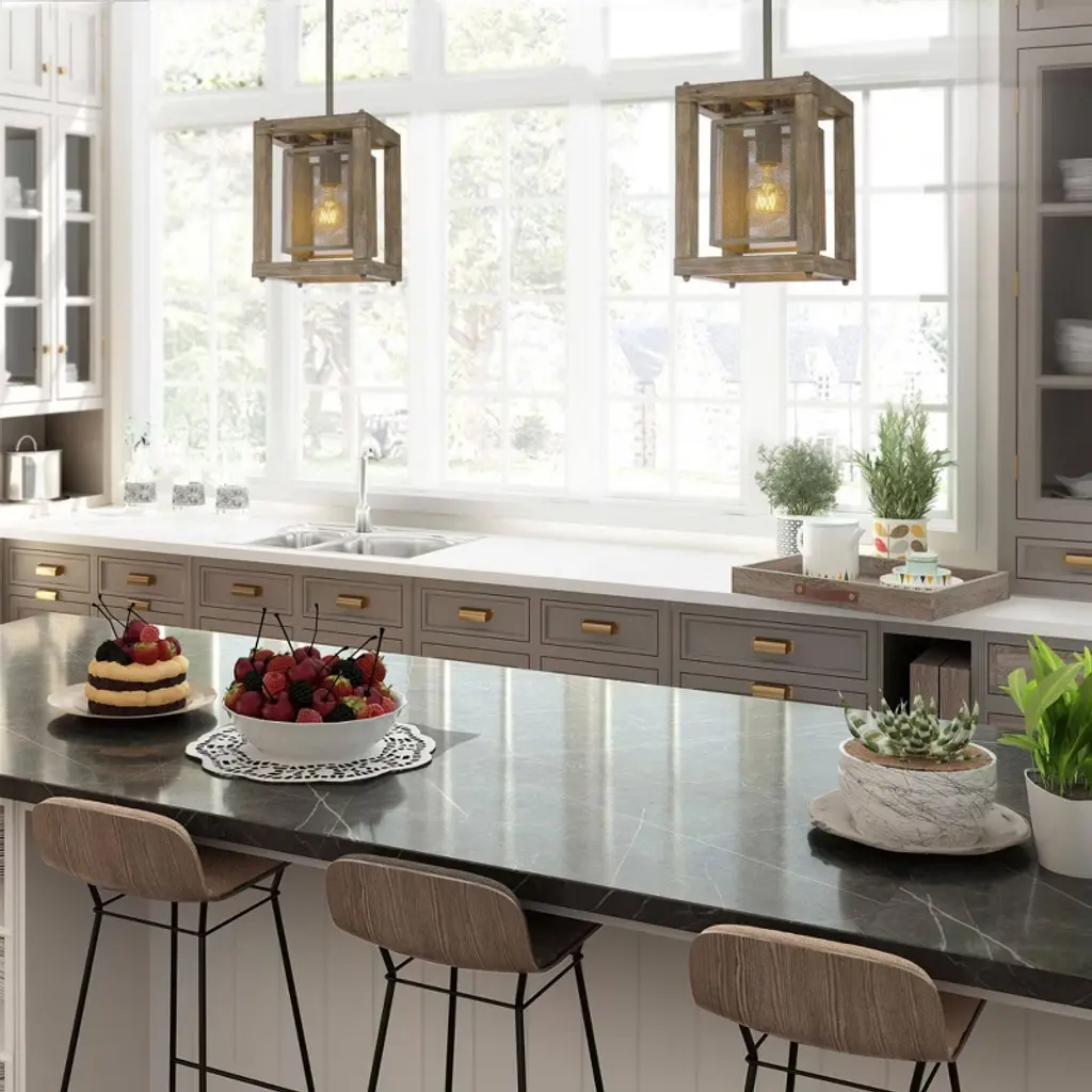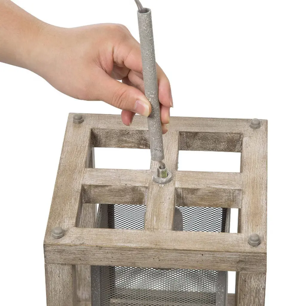 Compact in size but rich in character, this 1-light Mini pendant from LNC Home features a distressed wood cube frame surrounding a metal mesh inner shade. Measuring 8" wide by 10.5" high with an adjustable chain (13.5" to 73.5"), it fits perfectly in kitchens, hallways, or breakfast nooks. From the Timeless Collection, this design pairs natural wood with industrial detail, creating a pendant that feels both handcrafted and versatile. A warm accent on its own or a stylish addition in multiples, it adds texture and farmhouse charm to intimate spaces. Bulb not included.