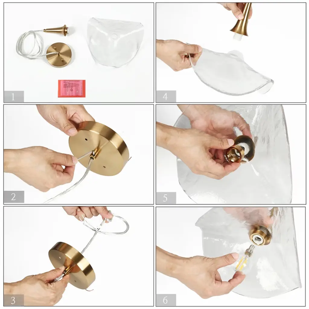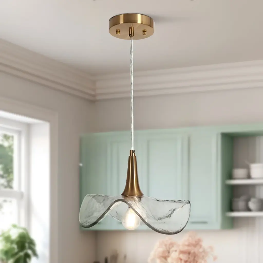 Bask in the radiant glow of our 1-Light plating brass modern/contemporary hanging pendant light, featuring exquisite handcrafted glass that beautifully diffuses sparkling and ambient light. This stunning fixture adds a touch of elegance to any space, casting a captivating illumination that enhances the ambiance of your home. Elevate your decor with the timeless beauty of clear handcrafted glass, creating a mesmerizing display that captivates the senses. Illuminate your space with sophistication and style, and enjoy the enchanting atmosphere this pendant light brings to your interior design.