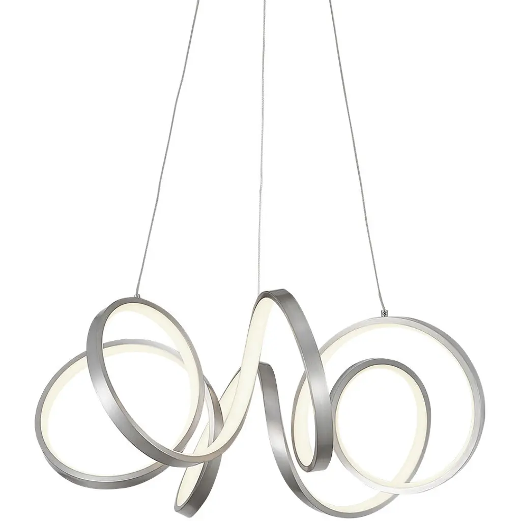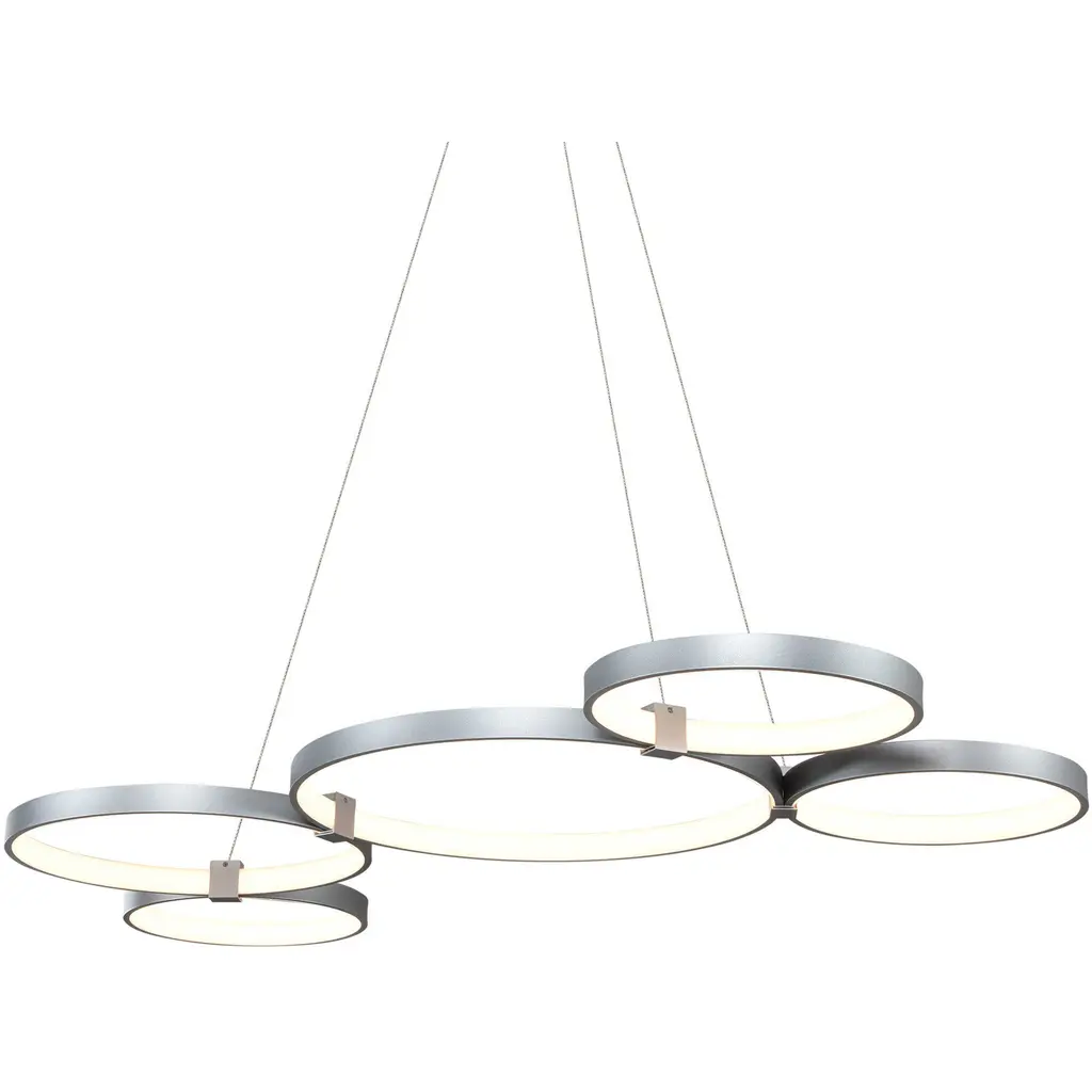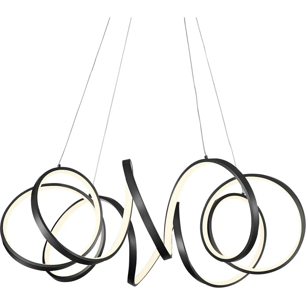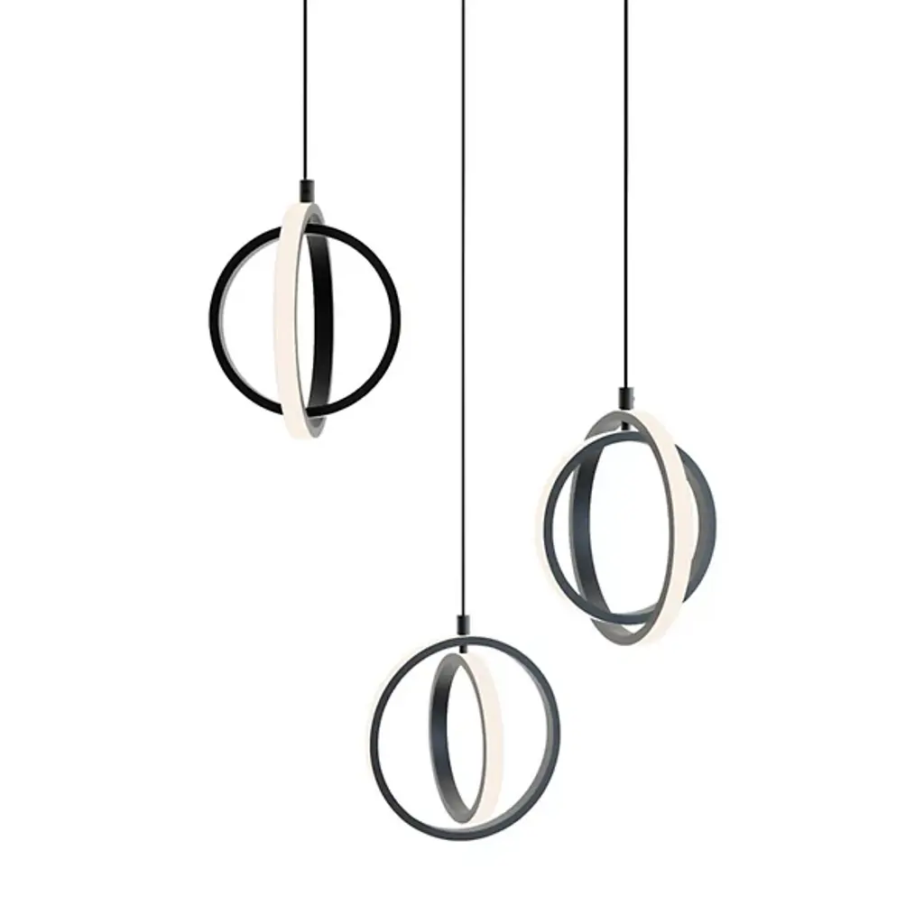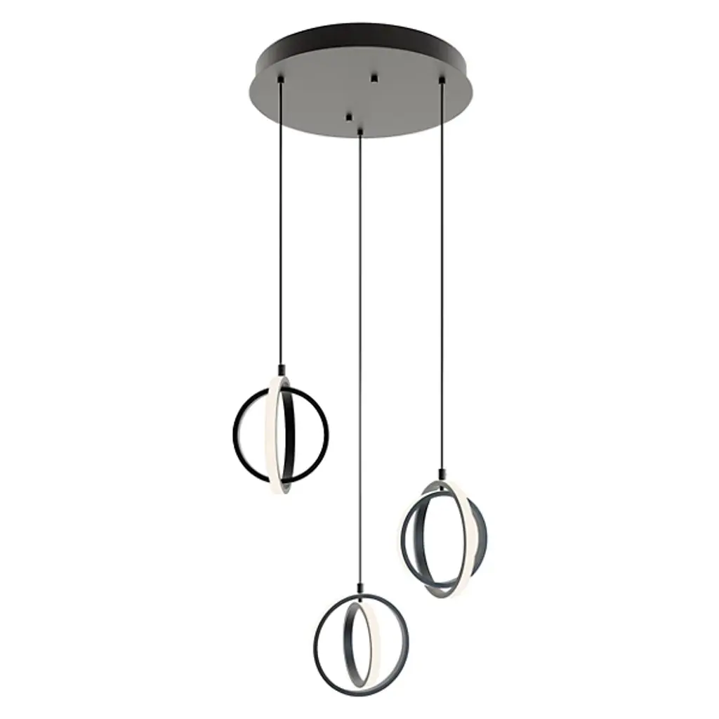 The bold, design-forward Lock Multi-Light LED Pendant from AFX Lighting brings geometric intrigue to kitchens and dining rooms, as well as added functionality thanks to the integrated dimmer function. Crafted with a set of integrated LED lights lining the interior rim of each large aluminum accent hoop, this architectural fixture stands out with its modern eye-catching style. You can even mount this pendant light on your bathroom ceiling, as it is rated for damp environments.