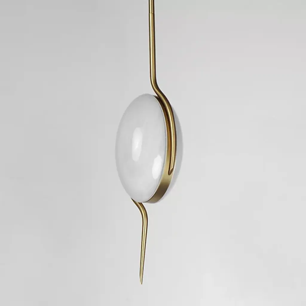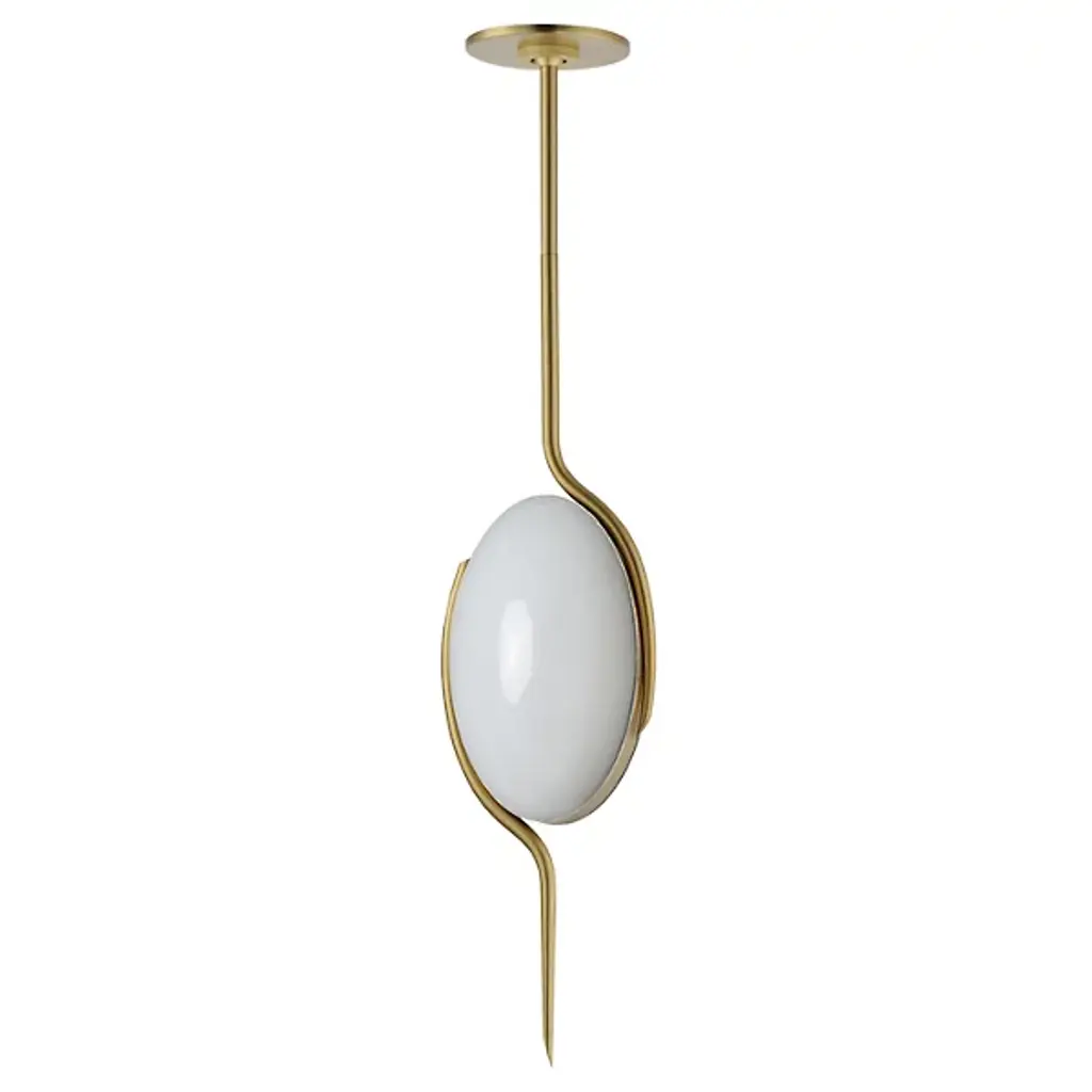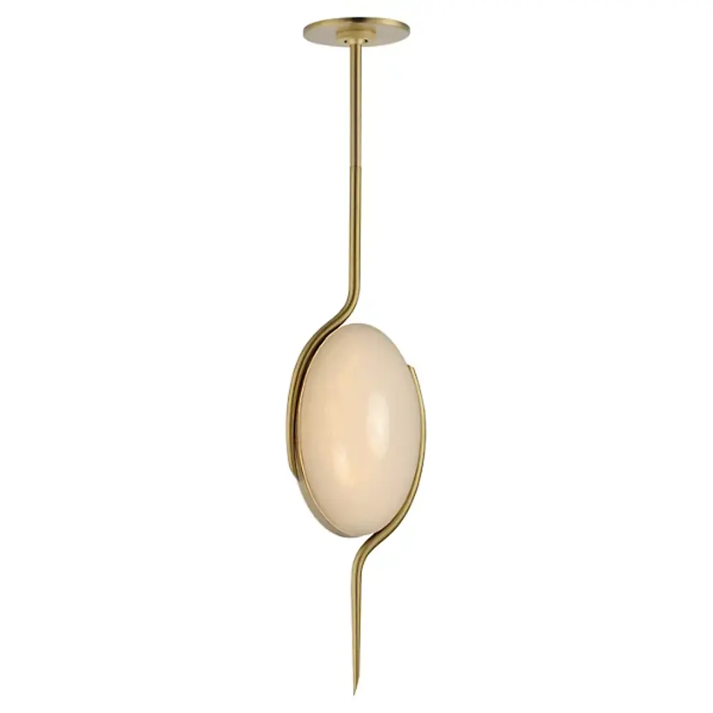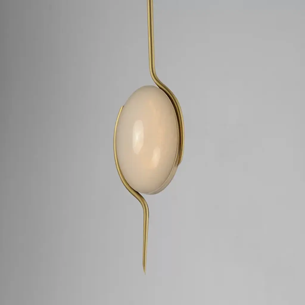 Gorgeous and generous, the Locket LED Mini Pendant by Studio M exudes an enchanting glow reminiscent of a milky cloud. It casts elegant luminosity that captivates the senses. Illuminated from within by evenly diffused LED lighting, these fixtures resonate like vibrant musical notes suspended in space. The metal structure extends downward from a circular canopy; all finished in Natural Aged Brass, its slender stem delicately embracing the rounded shade of marble glass. Its silhouette juxtaposes sharpness with softness, serving as a testament to the fusion of artistry and functionality, creating a captivating blend of opulence and sentimentality reminiscent of designer accessories.