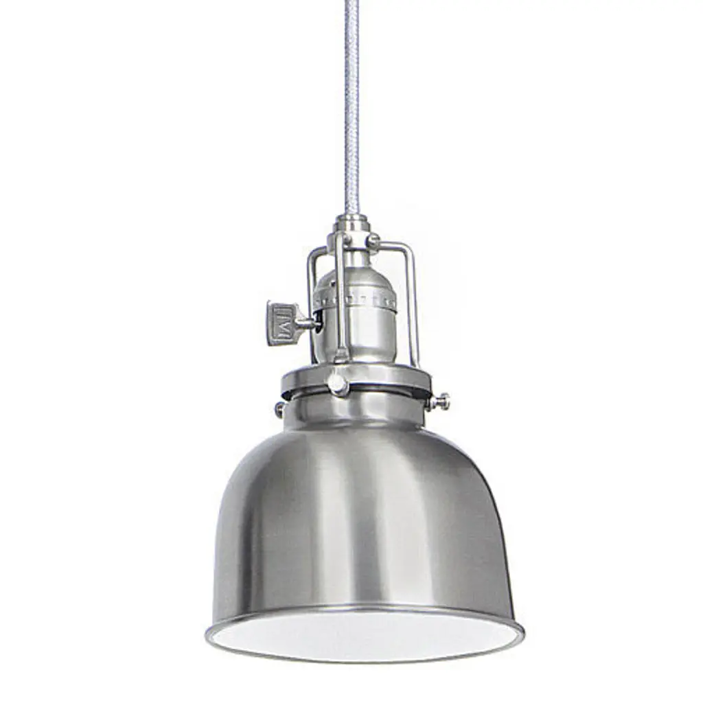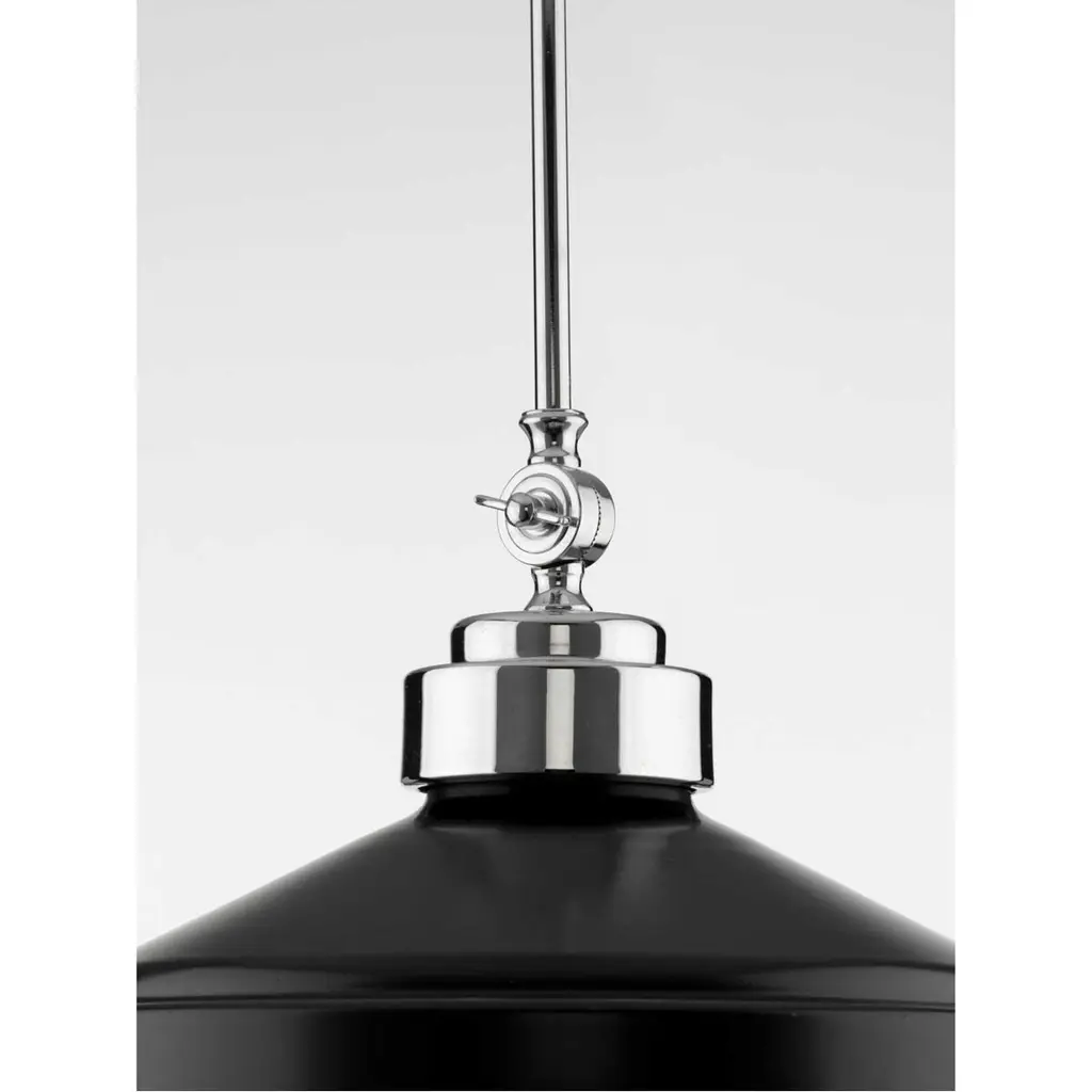 Embrace an industrial lighting design with this never-out-of-style pendant from the Loftin Collection. A matte black shade with polished chrome accents inspired by vintage automobile headlights hangs from a metal stem. A clear patterned glass shade is held by the industrial frame and creates a striking radial pattern when it is illuminated that is just right for wherever task lighting is needed.