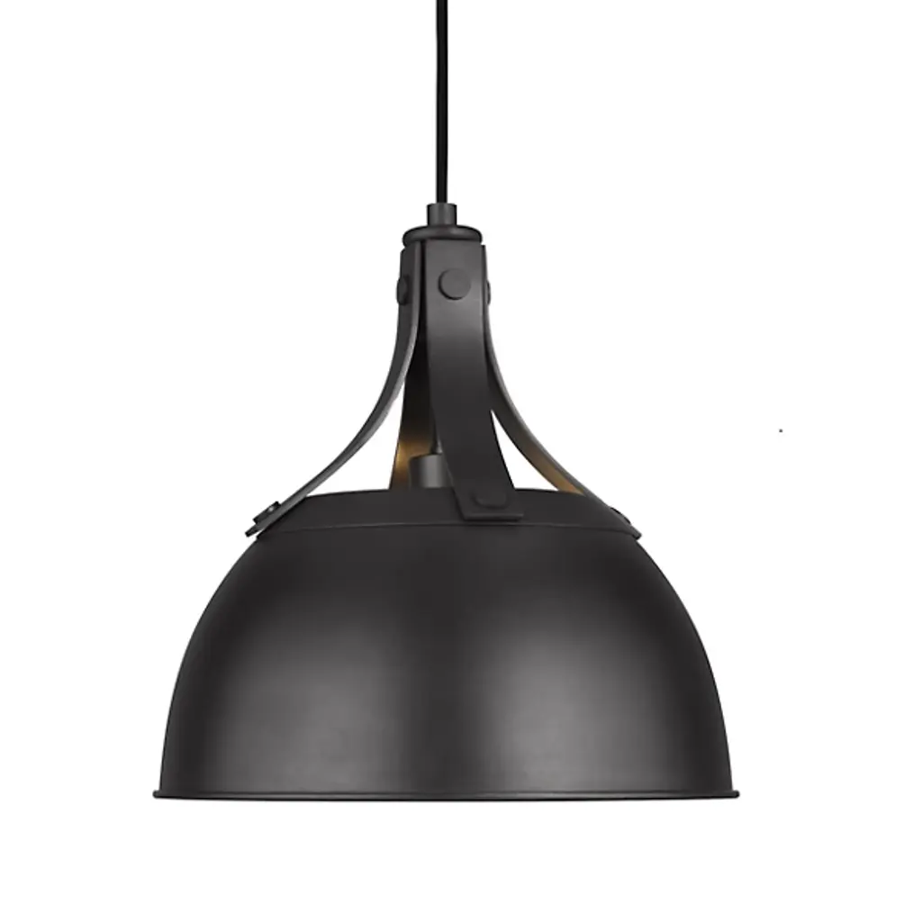 Sure to be the understated yet strong hero of your ceiling configuration. The Logan Pendant by Visual Comfort Studio, formerly known as TOB by Thomas OBrien, possesses a contemporary vibe that comes from its subtle finishes and simple shapes. Its dome-shaped shade evokes the classic pendant lights throughout history, giving the piece a timeless quality. A thick cylindrical canopy attached to the ceiling provides robust support for an ultra-thin cylindrical stem that holds up the shade with unbelievable strength.