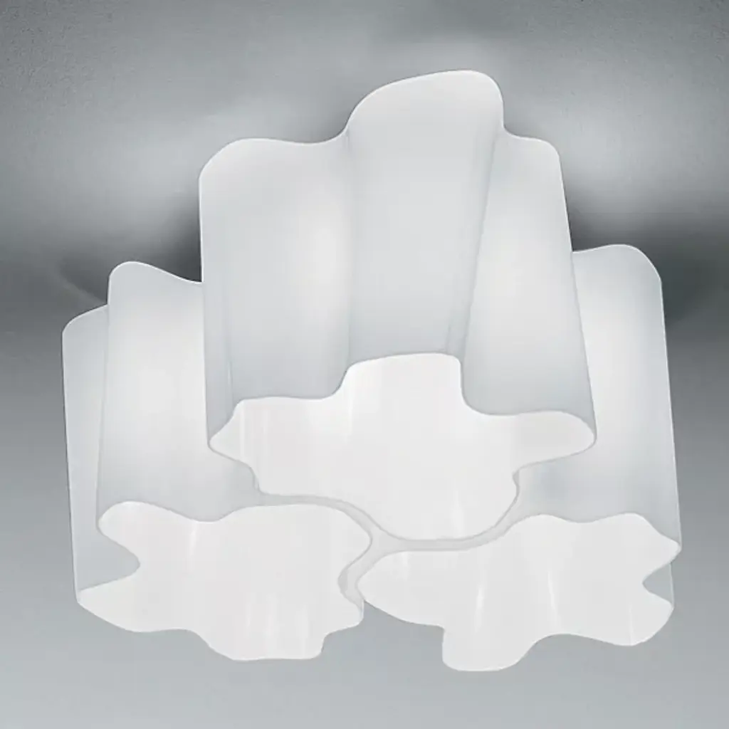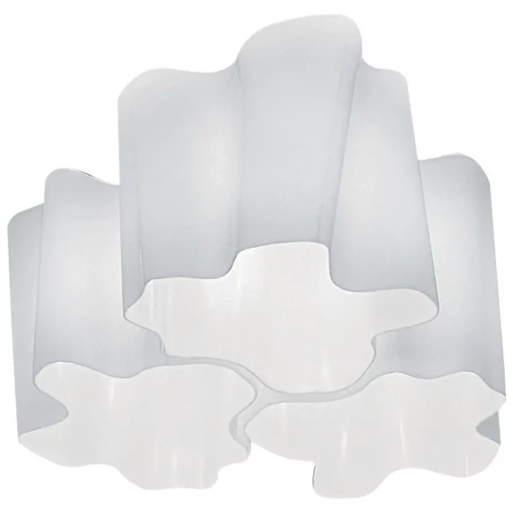 The Artemide Logico Mini Triple Nested Semi-Flushmount captivates with bright illumination and a clever configuration of monochromatic and flowing glass shades. The three hand-blown glass shades are molded into drape-like folds, which overlap and create a singular, tightly nested fixture. Designed by Michele De Lucchi and Gerhard Reichert.