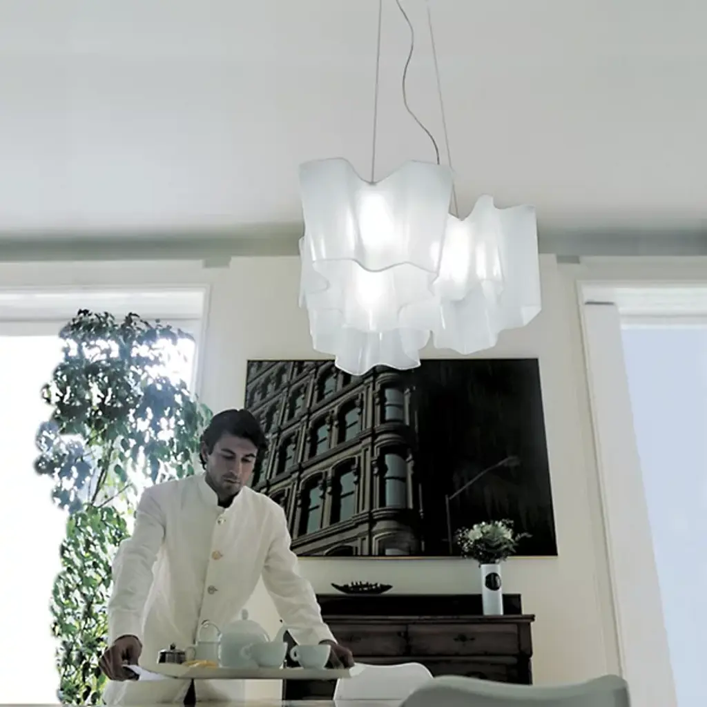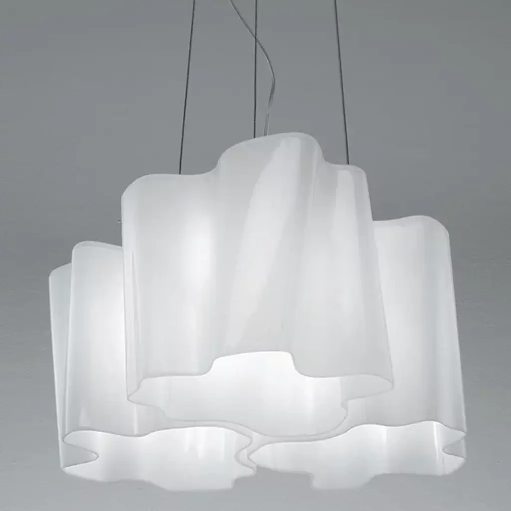 The Artemide Logico Triple Nested Pendant was designed by Michele De Lucchi and Gerhard Reichert to add richly layered light into modern spaces. The singular shade is actually three hand-blown glass shades formed into one tightly nested configuration, their various folds fitting together like puzzle pieces.