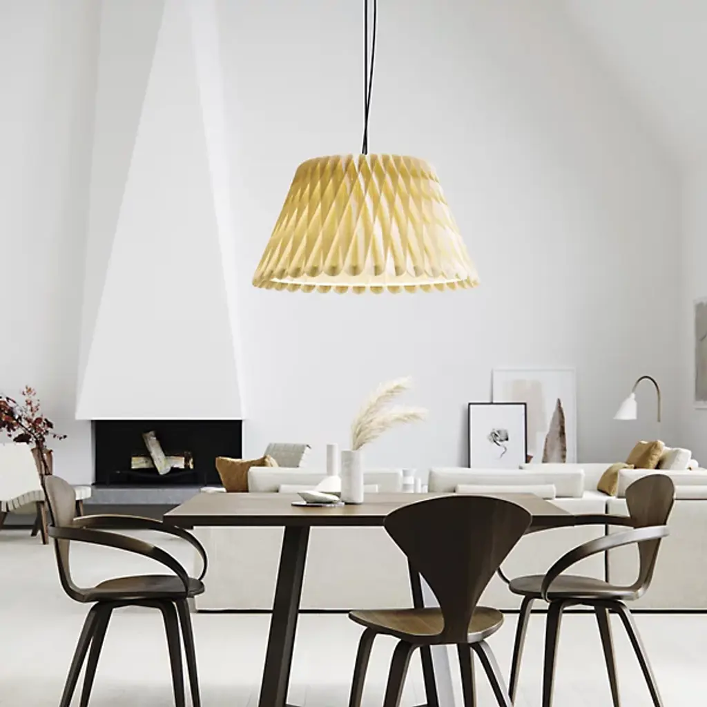 A splendid visual woven around light. Using vivid texturing and natural materials, the LZF Lola Pendant offers a transformative fixture for your modern space. The shade features Wood Veneer, carefully crafted to present its beautiful grain as the LED light emphasizes every detail within the diffuser. The thoughtful weaving of the shade creates a layering effect, enhancing the texture of the light as it passes through and giving the otherwise thin diffuser impressive volume. As the Wood delivers a warm ambient glow, downlighting flows freely through the open mouth of the pendant, shining useful directional light over the surfaces below.