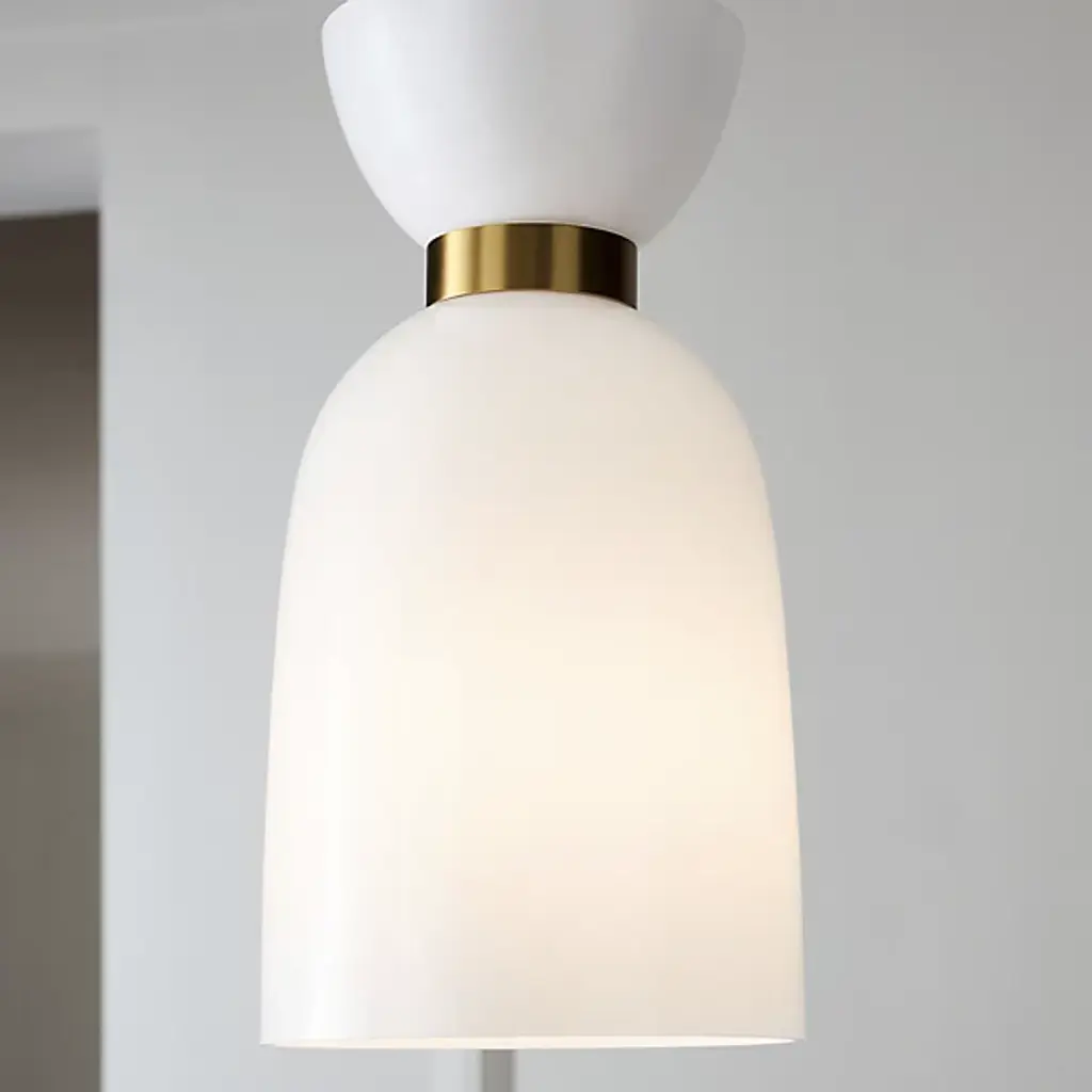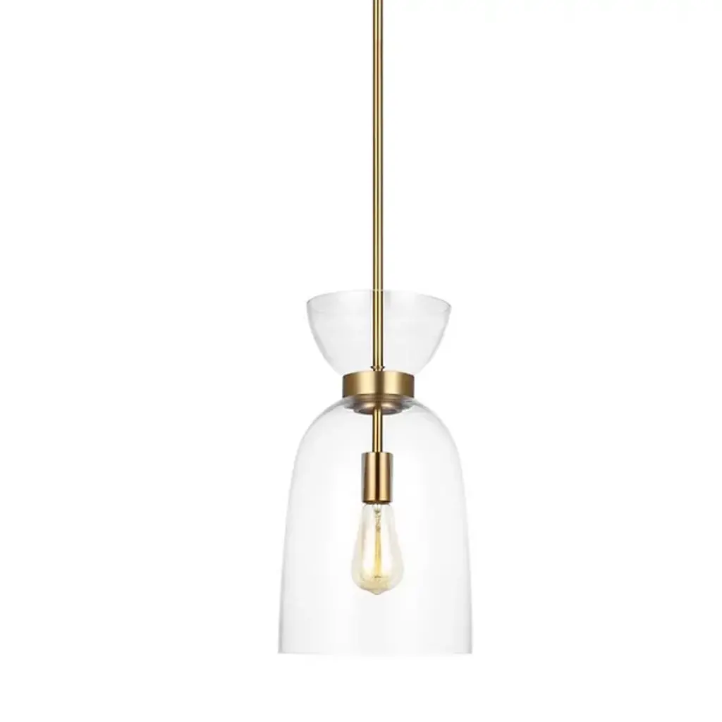 The Londyn Pendant by Visual Comfort Studio, formerly known as kate spade new york, is a beautiful design with bold metal touches that was inspired by the playful geometry found in midcentury fixtures that incorporate metal and glass together. Suspended by a sleek down rod, a set of gracefully curved pieces are connected together with a metal cuff, creating an elongated, domed shade with a decorative top. Within, a single light source offers a bright touch to its surroundings as the shade practically shapes its direction.