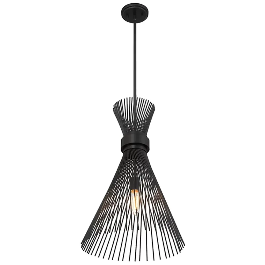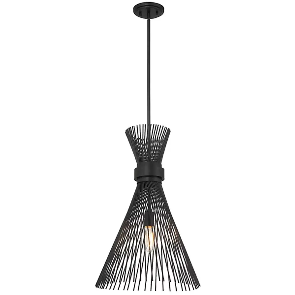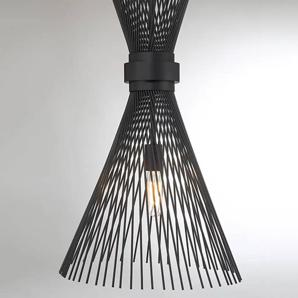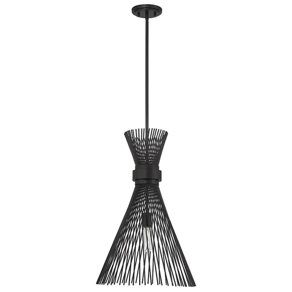 The Longfellow Pendant from Savoy House presents an intricate transitional style with its captivating design. Metal rods form the fixture’s shade, converging around a central downrod and splaying outward, forming an offset hourglass shape. When illuminated, inner lamping emits a dramatic glow that captures attention, enhancing any space with its elegant presence. The pendant is finished in Burnished Brass and marries fashionable aesthetics with functional brilliance, making it a subtle, artistic addition to interiors.