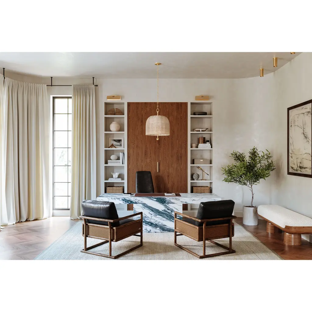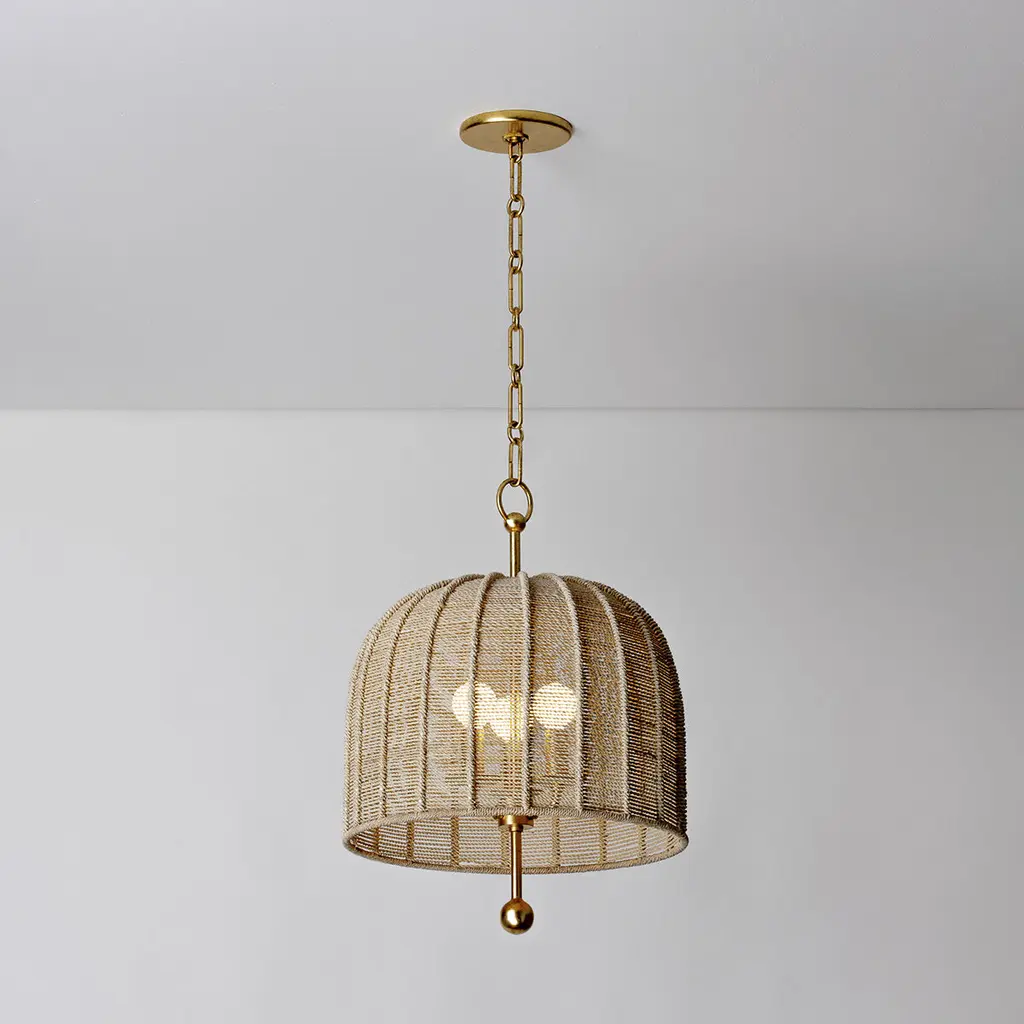 Tipping its cap to designer Hans-Agne Jakobsson, Lonnie rethinks the materiality of his classic umbrella-shaped shade. In this interpretation, the frame of the shade is wrapped in Bleached Abaca rope, allowing light to pass through. As a design detail, the Vintage Gold Leaf stem suspending the shade appears to pierce through the entire fixture, finishing in a decorative sphere. Lonnie is available in two sizes with 3 or 4 lights.*Due to the one-of-a-kind nature of the medium, exact colors and patterns may vary slightly from the image shown.