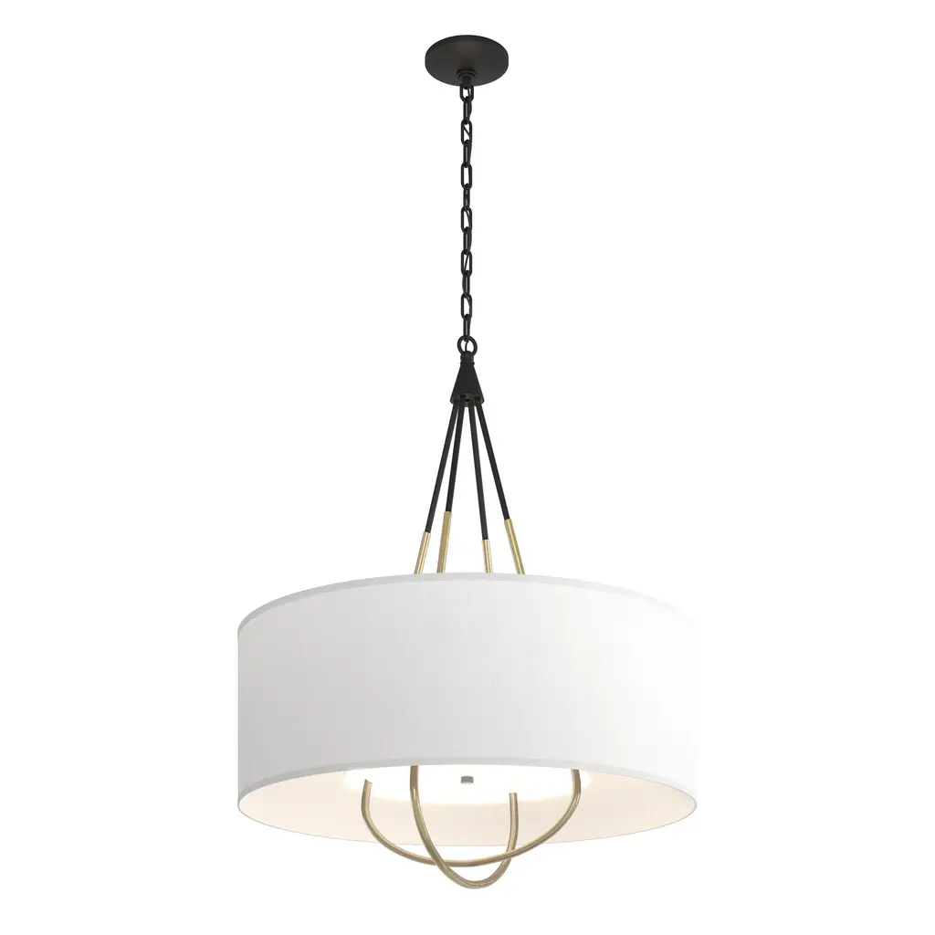 Refinement of materials and purity of line combine to make the Loop Pendant an elegant and versatile choice. Explore the many options this fixture offers—select a base finish for the canopy and chain, an accent finish for the intercrossed loops, and multiple outer shade color choices. A white inner shade gracefully diffuses the light while providing a tailored detail.