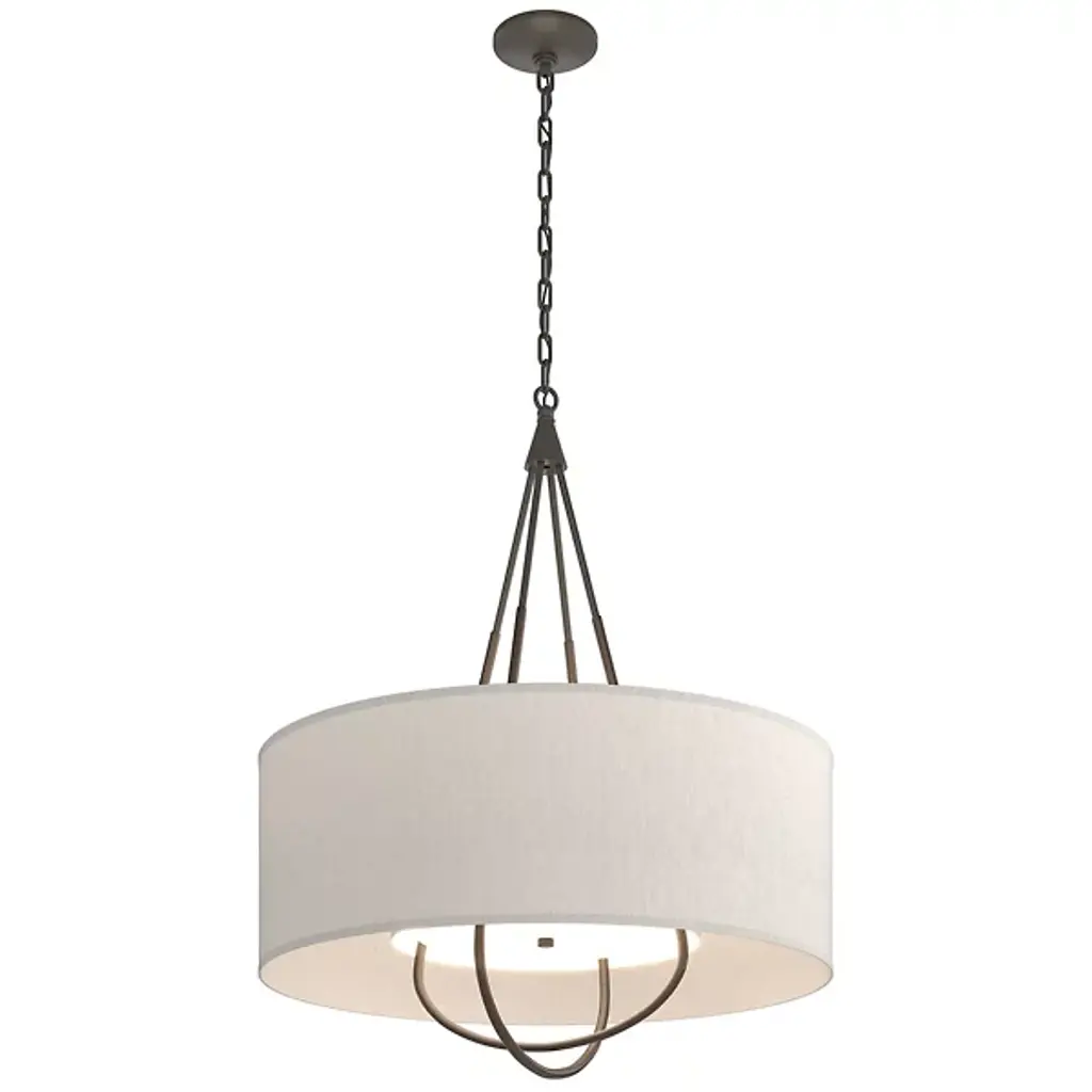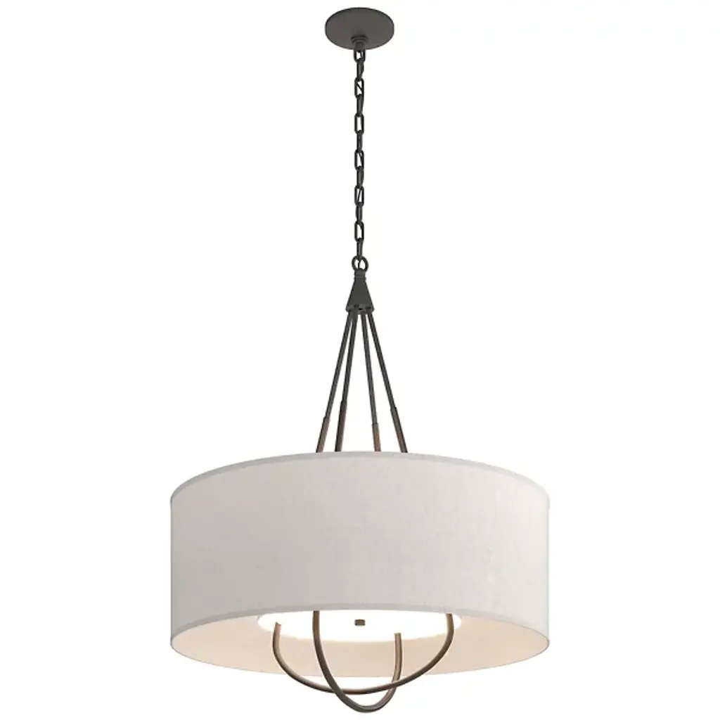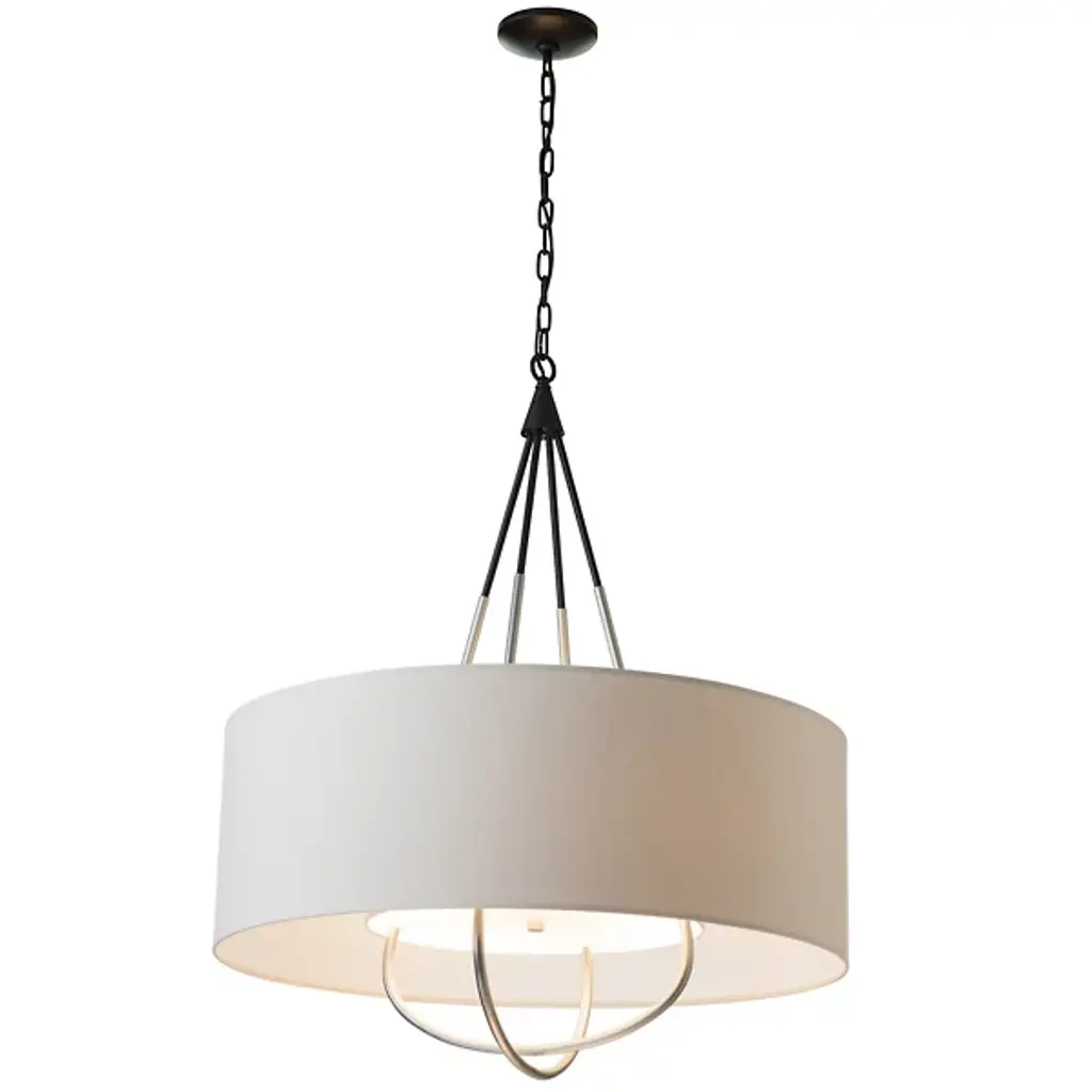 Simplistic and ultra-modern, the Loop Pendant by Hubbardton Forge allows copious amounts of soft, diffused lighting to enter interior spaces of the home while showcasing its minimal-inspired form factor. The piece is shaped into a titular loop formation while two intersecting circles droop down from its center, giving the fixture the illusion of one cohesive and uniform figure built from the same materials. Within the Loop’s shade is its incandescent lamping (not included) which radiates a warm, focused type of lighting experience.