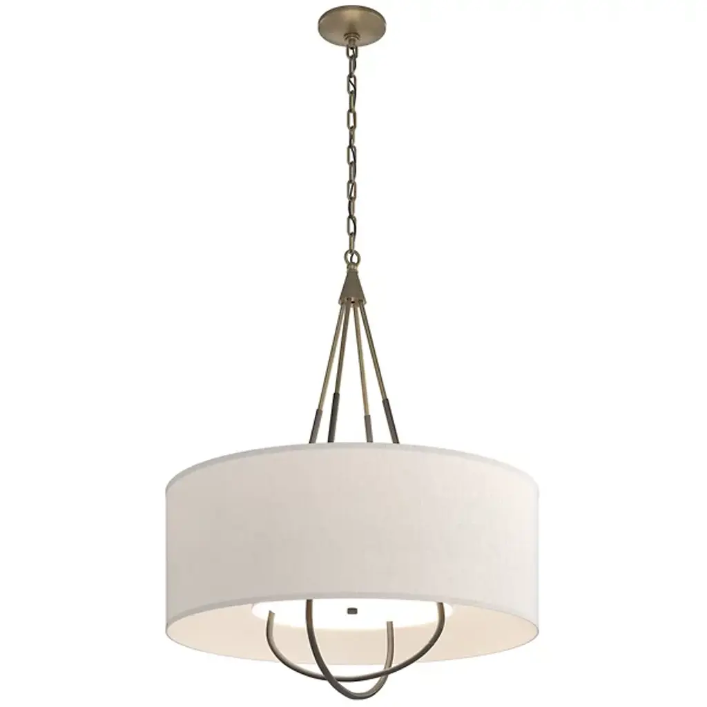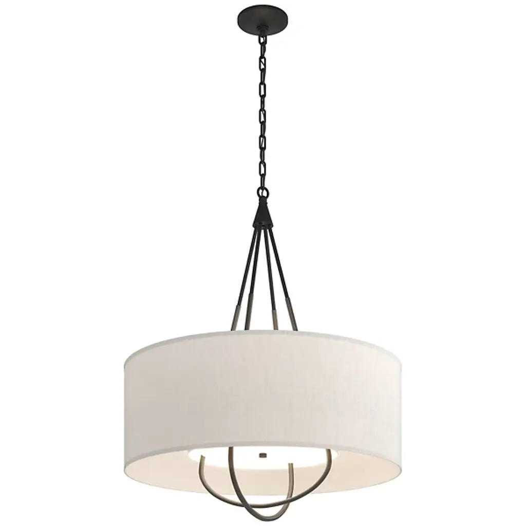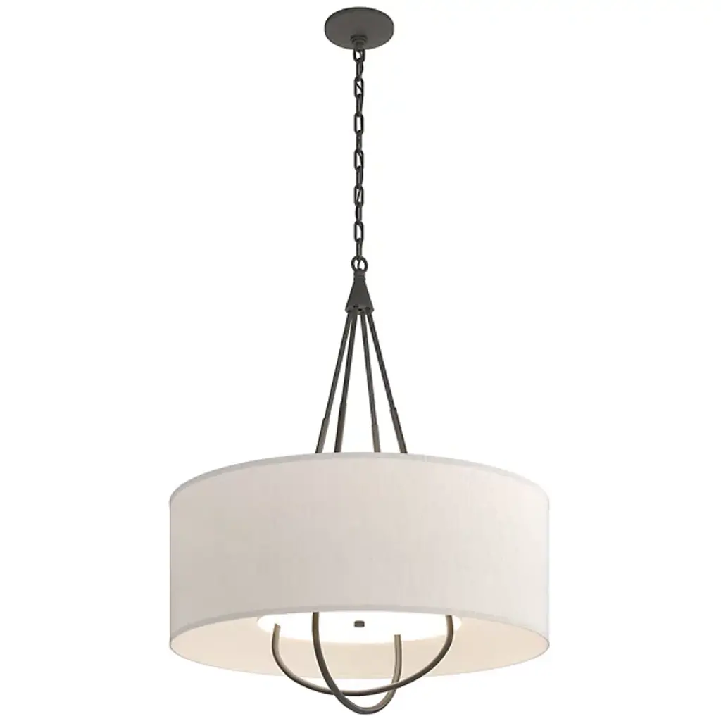 Simplistic and ultra-modern, the Loop Pendant by Hubbardton Forge allows copious amounts of soft, diffused lighting to enter interior spaces of the home while showcasing its minimal-inspired form factor. The piece is shaped into a titular loop formation while two intersecting circles droop down from its center, giving the fixture the illusion of one cohesive and uniform figure built from the same materials. Within the Loop’s shade is its incandescent lamping (not included) which radiates a warm, focused type of lighting experience.