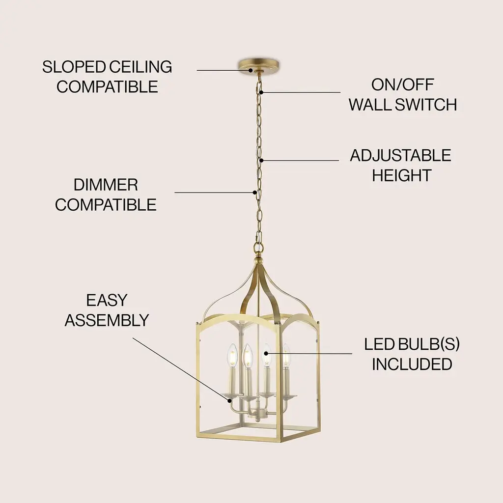 Clean and elegant, this pendant lantern light has a gracious style with a cage-like design that features gentle curves. With four lights, this fixture is great anywhere, but looks fantastic welcoming you home in a foyer space. With an adjustable drop from 27"-99" it can be sized to fit any height ceiling.