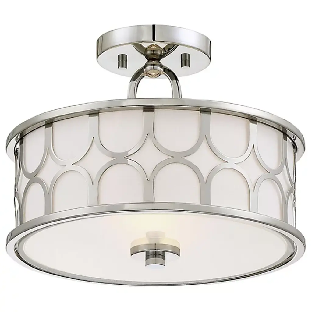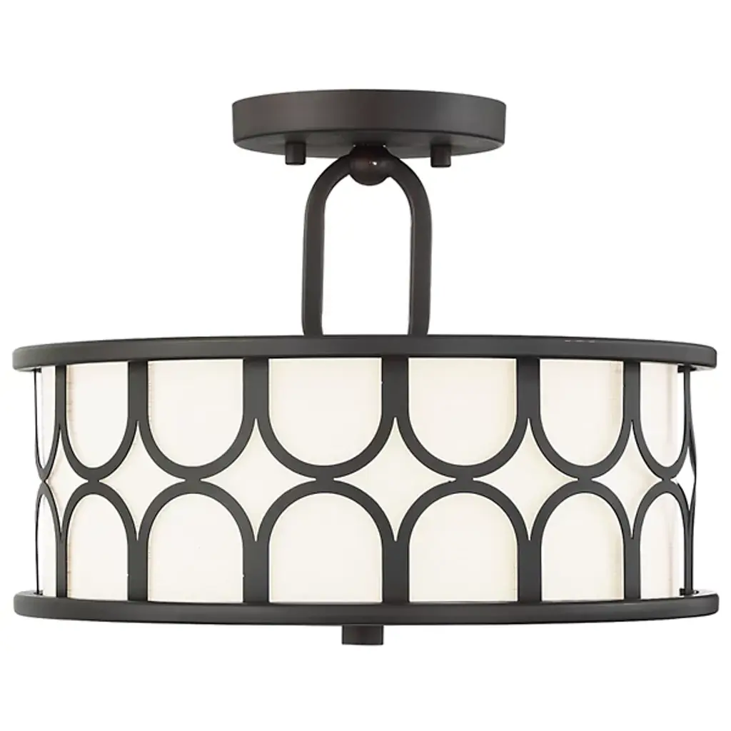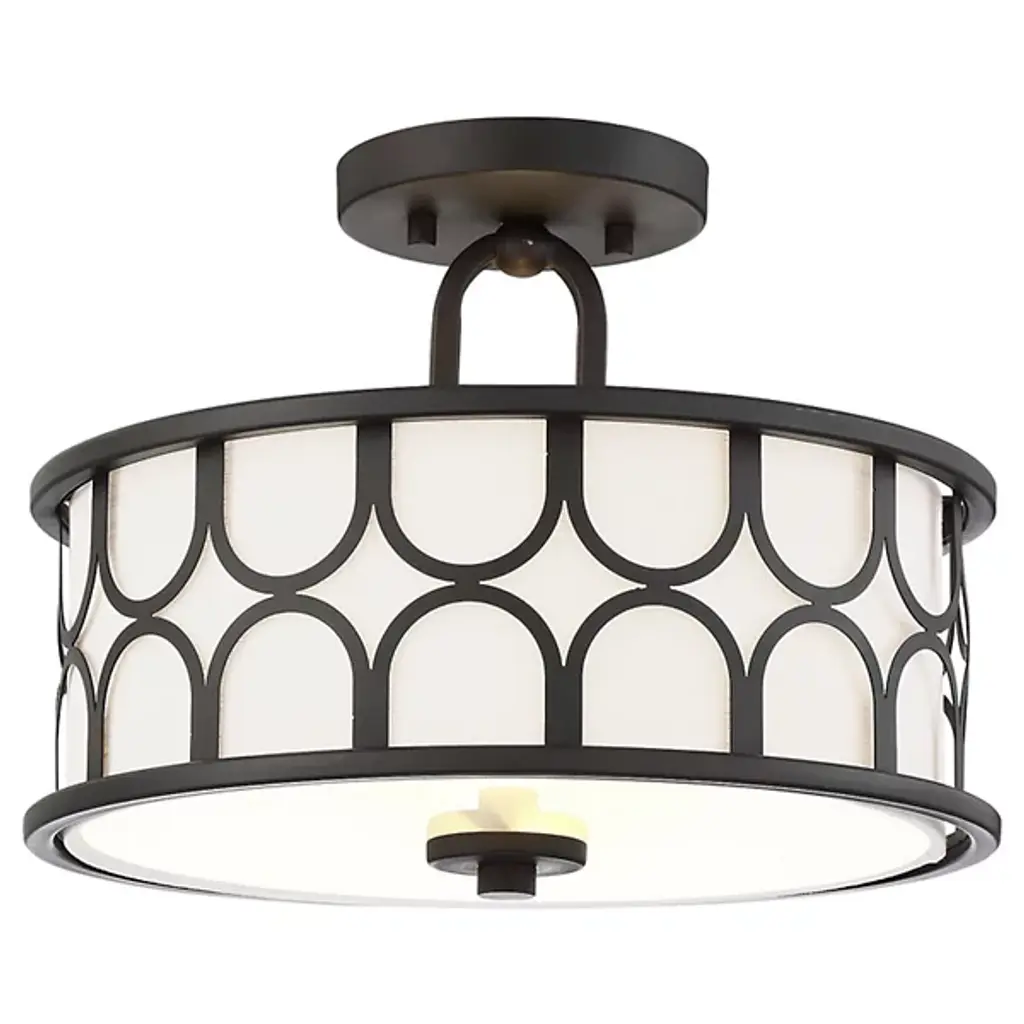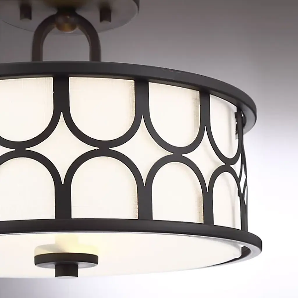 Classic comfort. Informed by tradition yet mindful of future trends, the Lou Semi-Flushmount by Alder & Ore is packed with versatility. This unassuming fixture follows the basic rules of drum shade design, spicing things up with curvilinear geometric metalwork around the entire edge. Its simple ceiling plate mirrors the cylindrical shape for a unified, up-to-date aesthetic.
