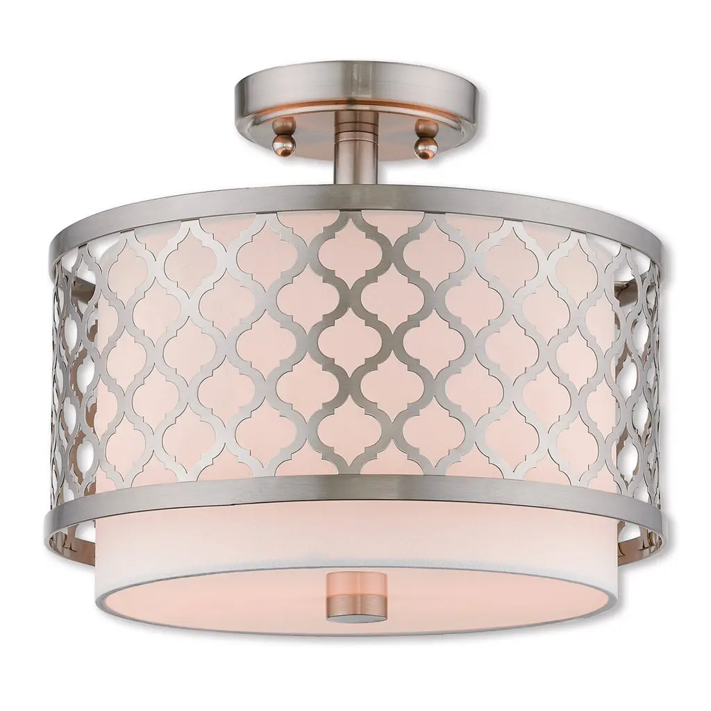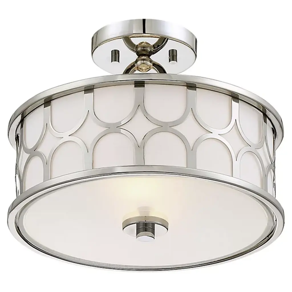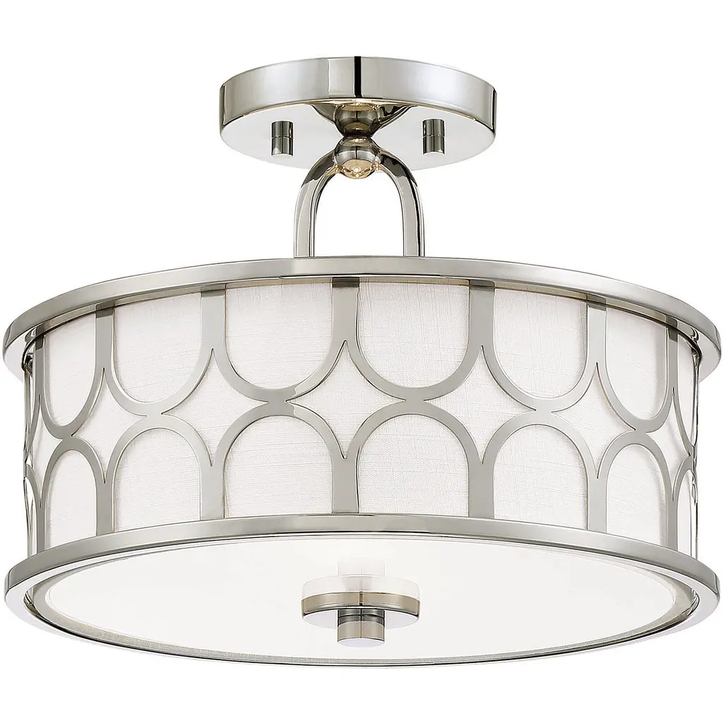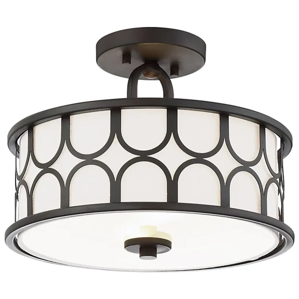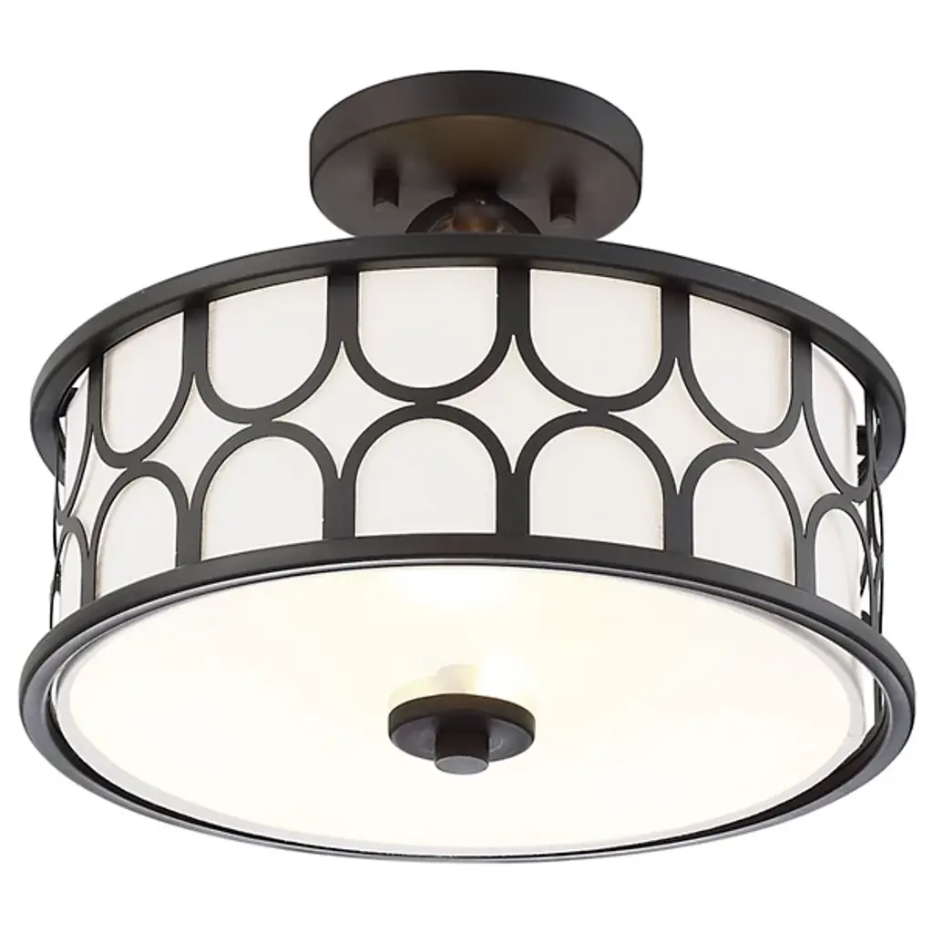 Classic comfort. Informed by tradition yet mindful of future trends, the Lou Semi-Flushmount by Alder & Ore is packed with versatility. This unassuming fixture follows the basic rules of drum shade design, spicing things up with curvilinear geometric metalwork around the entire edge. Its simple ceiling plate mirrors the cylindrical shape for a unified, up-to-date aesthetic.