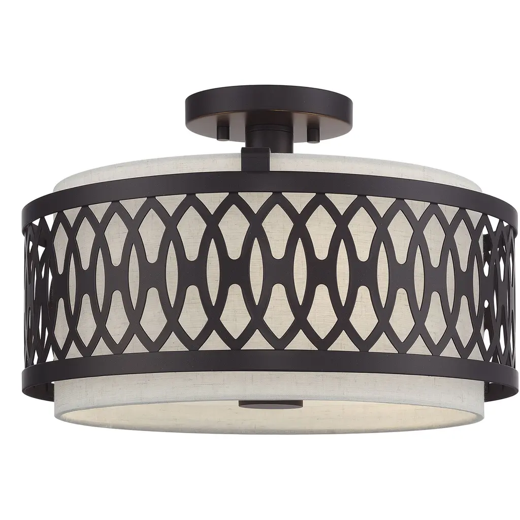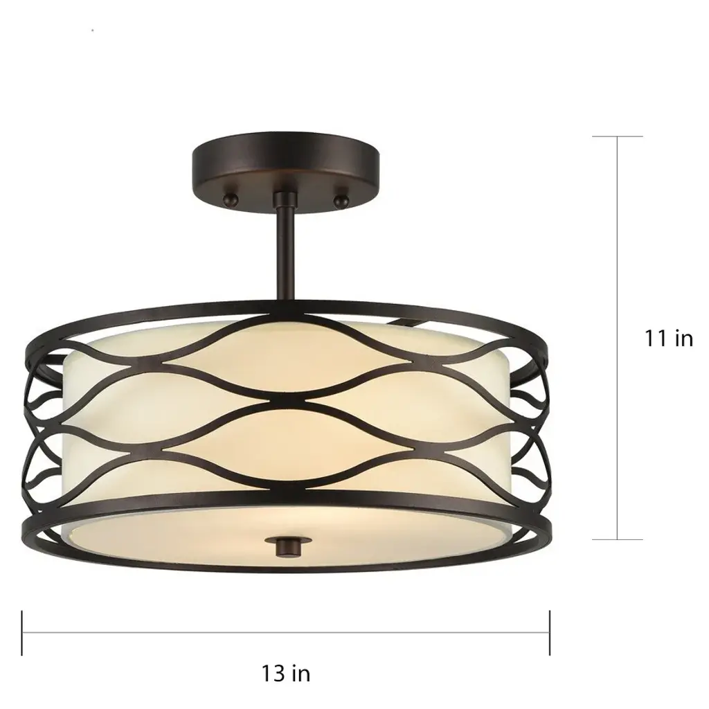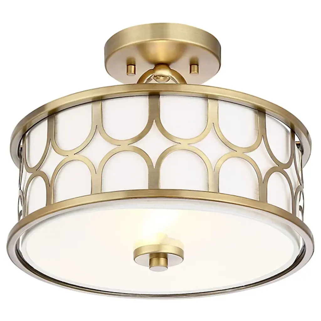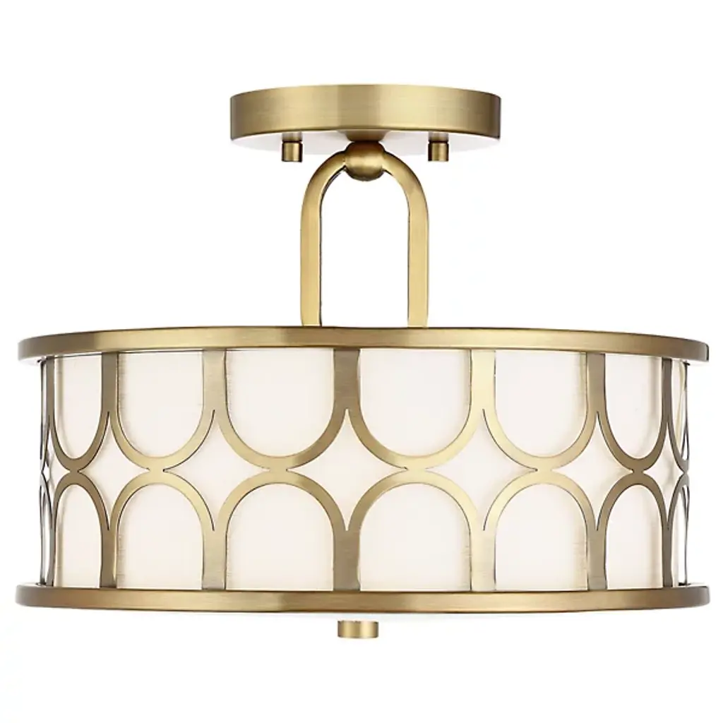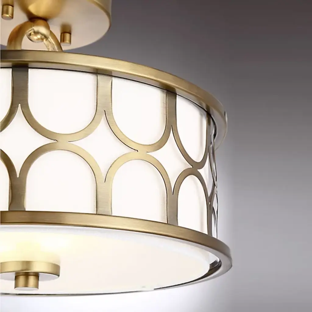 Classic comfort. Informed by tradition yet mindful of future trends, the Lou Semi-Flushmount by Alder & Ore is packed with versatility. This unassuming fixture follows the basic rules of drum shade design, spicing things up with curvilinear geometric metalwork around the entire edge. Its simple ceiling plate mirrors the cylindrical shape for a unified, up-to-date aesthetic.