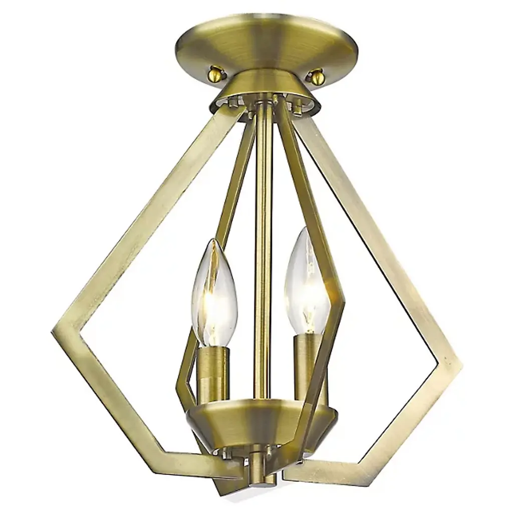 Influenced by modern, industrial styles, the Louie Semi Flushmount/Pendant by Alder & Ore is a striking, structured addition to spaces. Suspended by a linked chain, the openly styled frame that defines the geometric silhouette of this design has a clean, triangular shape that surrounds a collection of visible candelabras. Offering plenty of illumination to spaces thanks to its airy configuration, this piece is dressed up with a beautiful finish for a sophisticated touch.