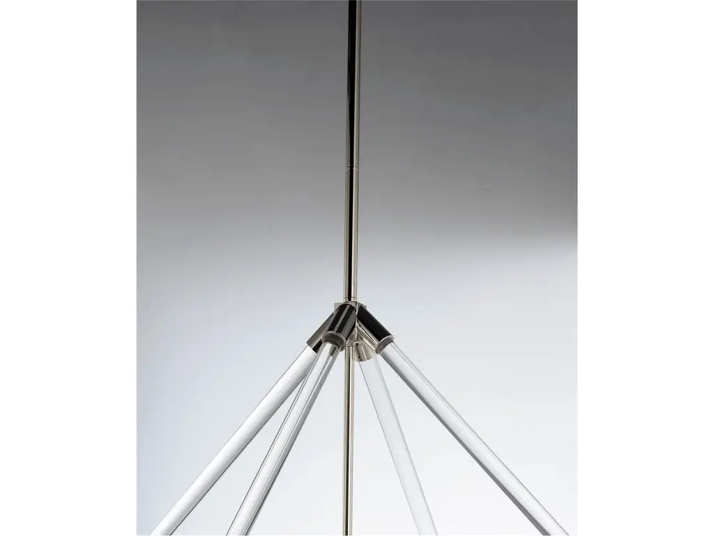 Unique and dramatic pendants are created using solid Clear glass rods that fit into castings finished in Polished Nickel. This design is a creative mix of modern and classic which has a broad universal appeal.Unique and dramatic pendants are created using solid Clear glass rods that fit into castings finished in Polished Nickel. This design is a creative mix of modern and classic which has a broad universal appeal.