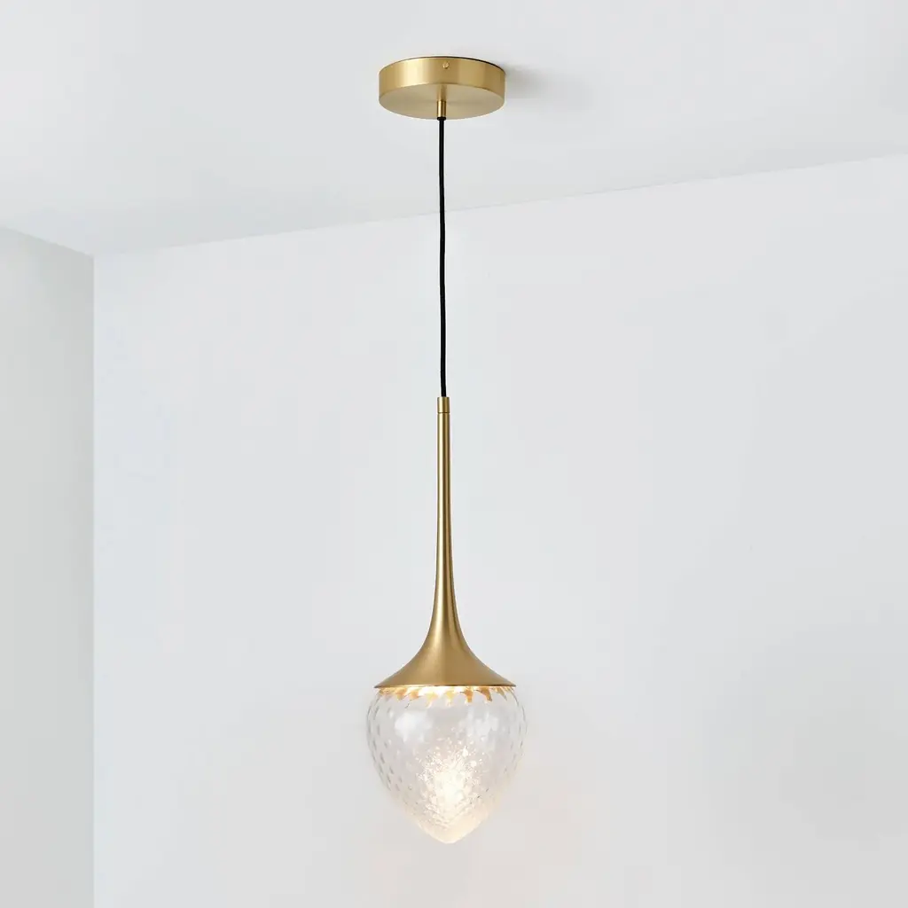 Like its smaller Louis brother pendant, the larger version recalls the age of jazz with its trumpet shape. Chose from a range of chic metal finishes for the solid-brass fixture, with an elegant mouth-blown diffuser in a choice of clear or opal patterned glass. A standout alone or lovely in a combo when mixed with the smaller Louis or CVL's complementary Flèa lighting range.