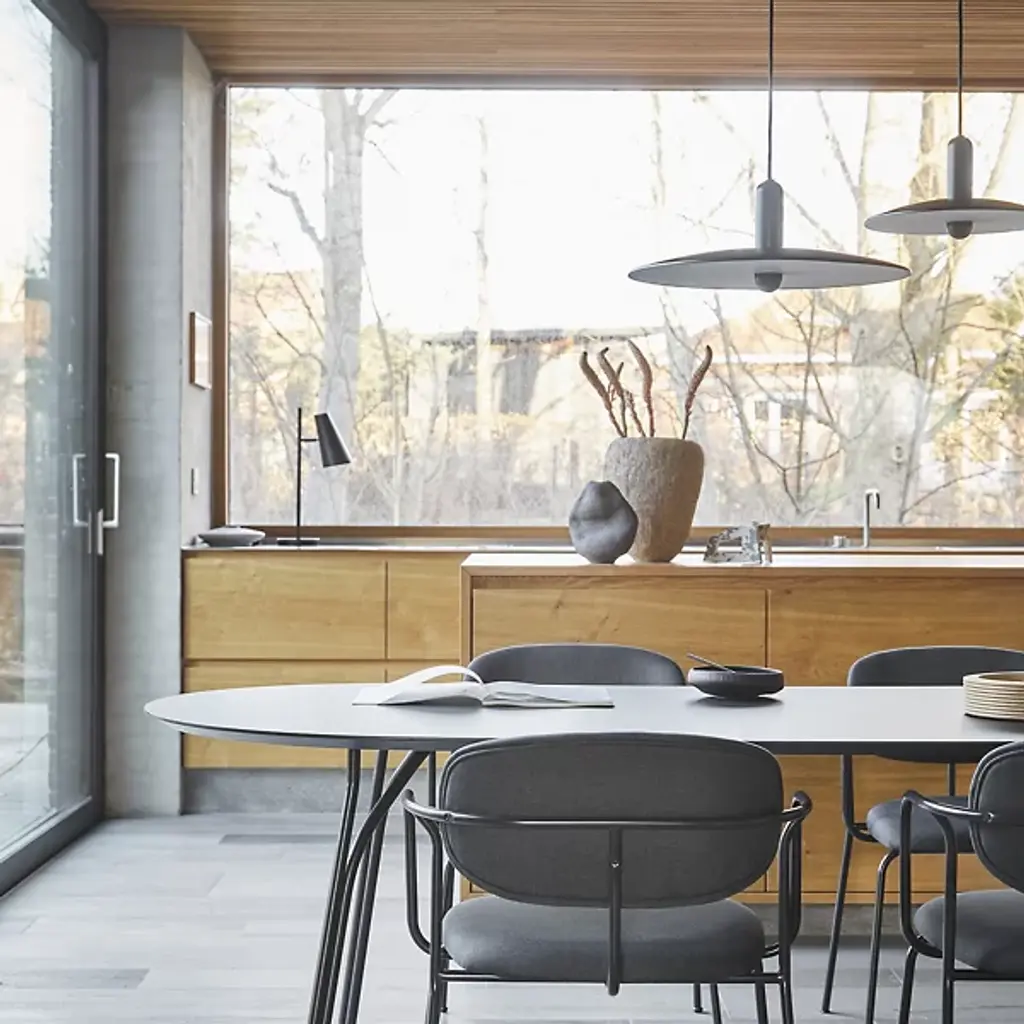 Presented by Woud, the LU Pendant is a design by Beaverhausen, a Brussels-based design studio that was founded by couple Mimy A. Diar and Ad Luijten. With a mutual background in art direction and communication, the designer duo expresses a strong sense of storytelling in their pieces. The LU is an exceptional example of this creative criterion, with a contrast of forms and their intersection with each other. Named after the French word for light, ‘lumière,’ the result is a piece that seems to float through a thin circular light source.