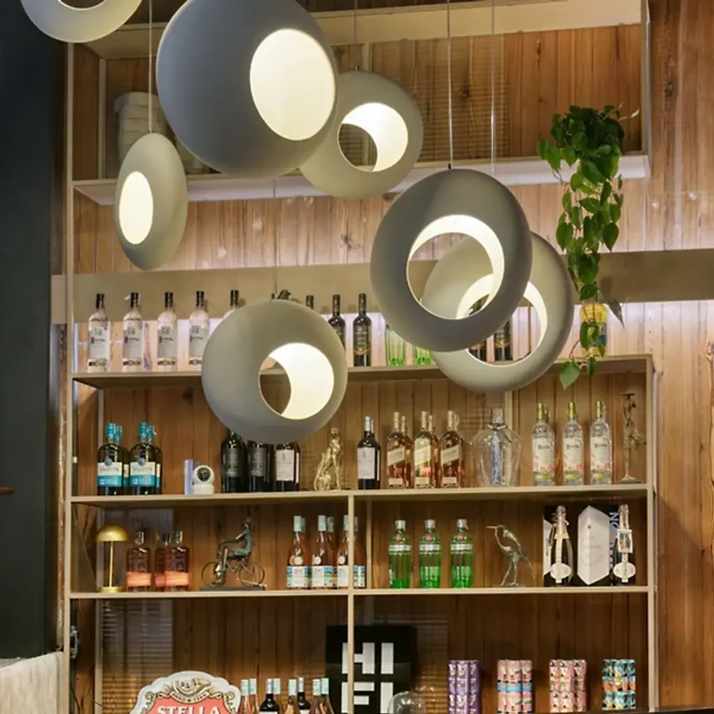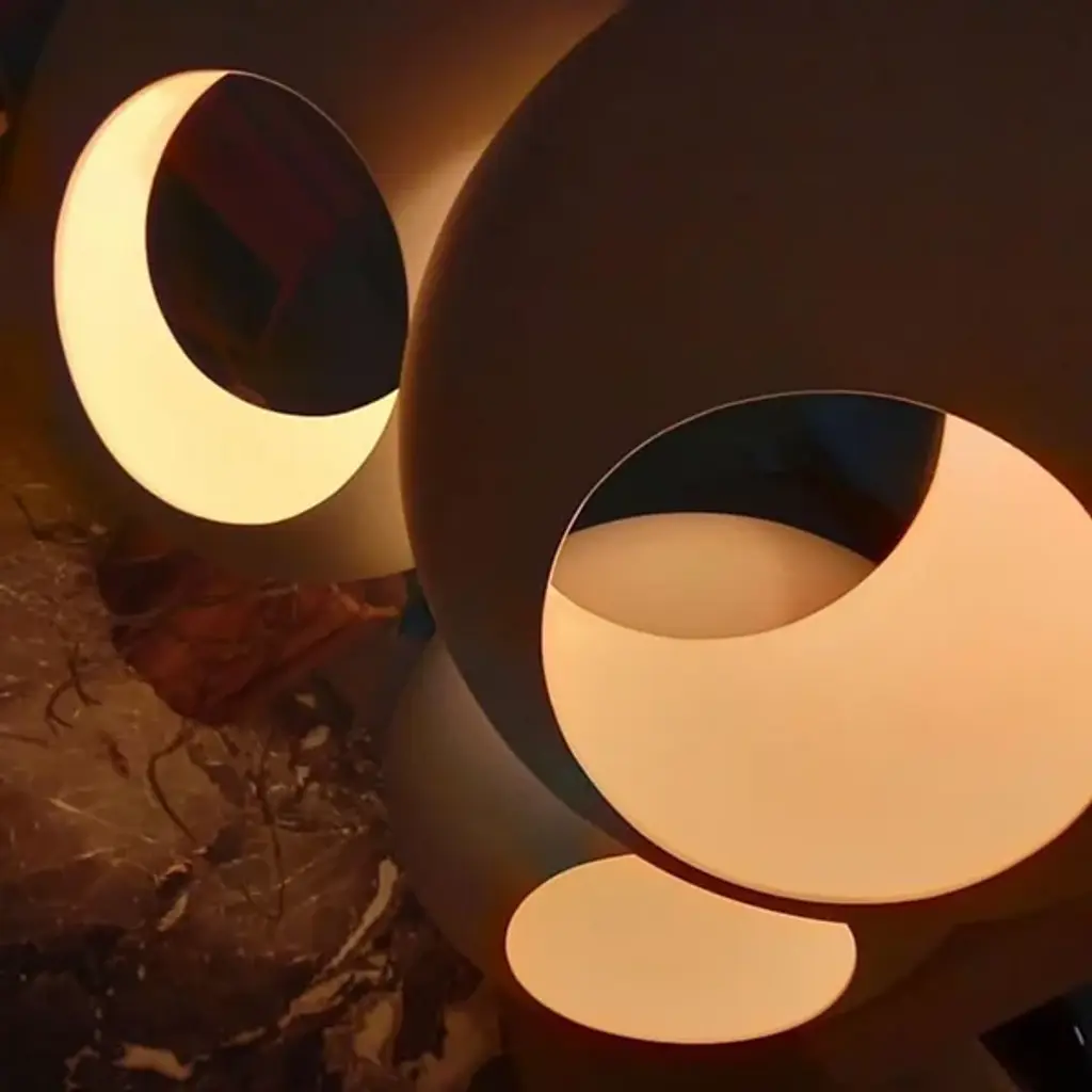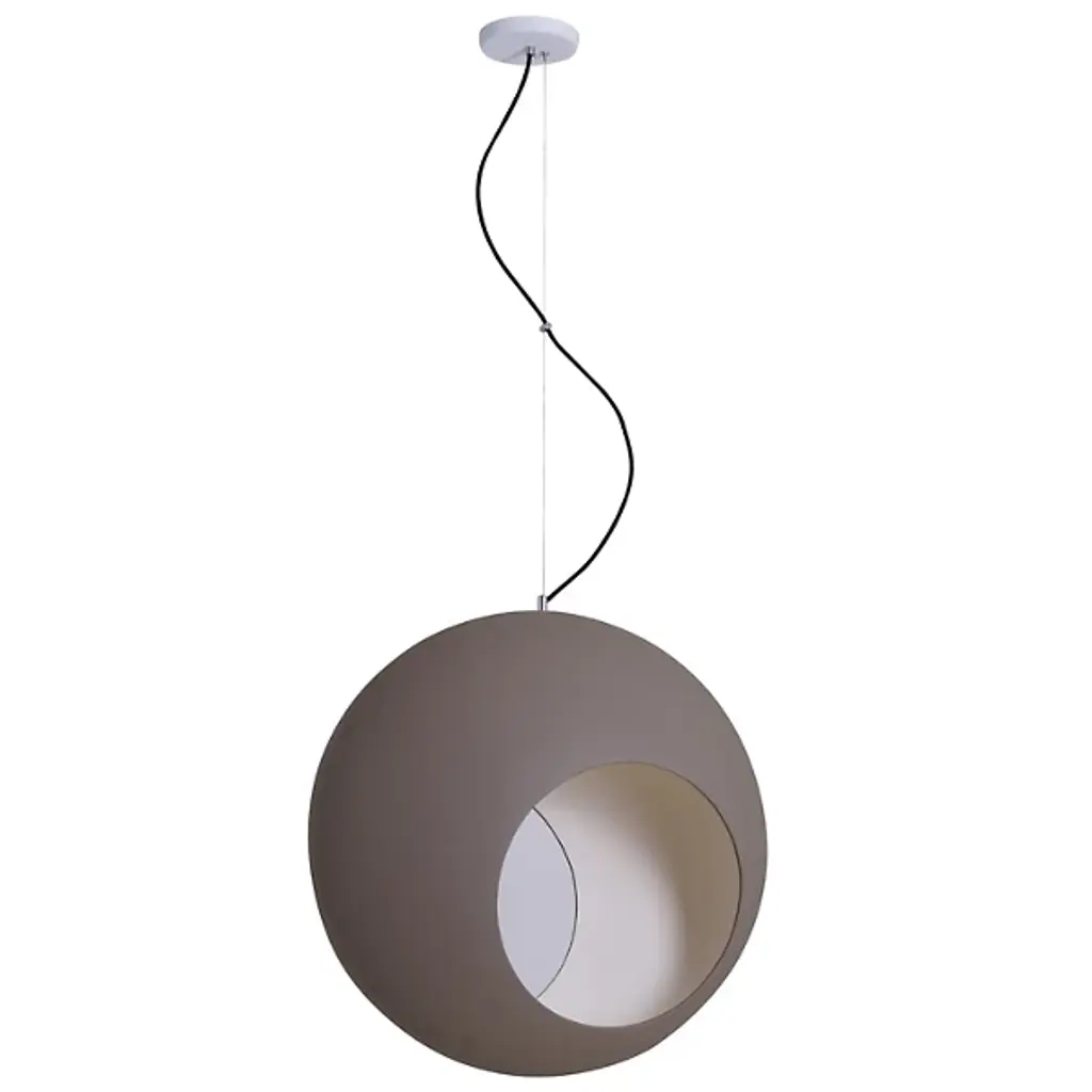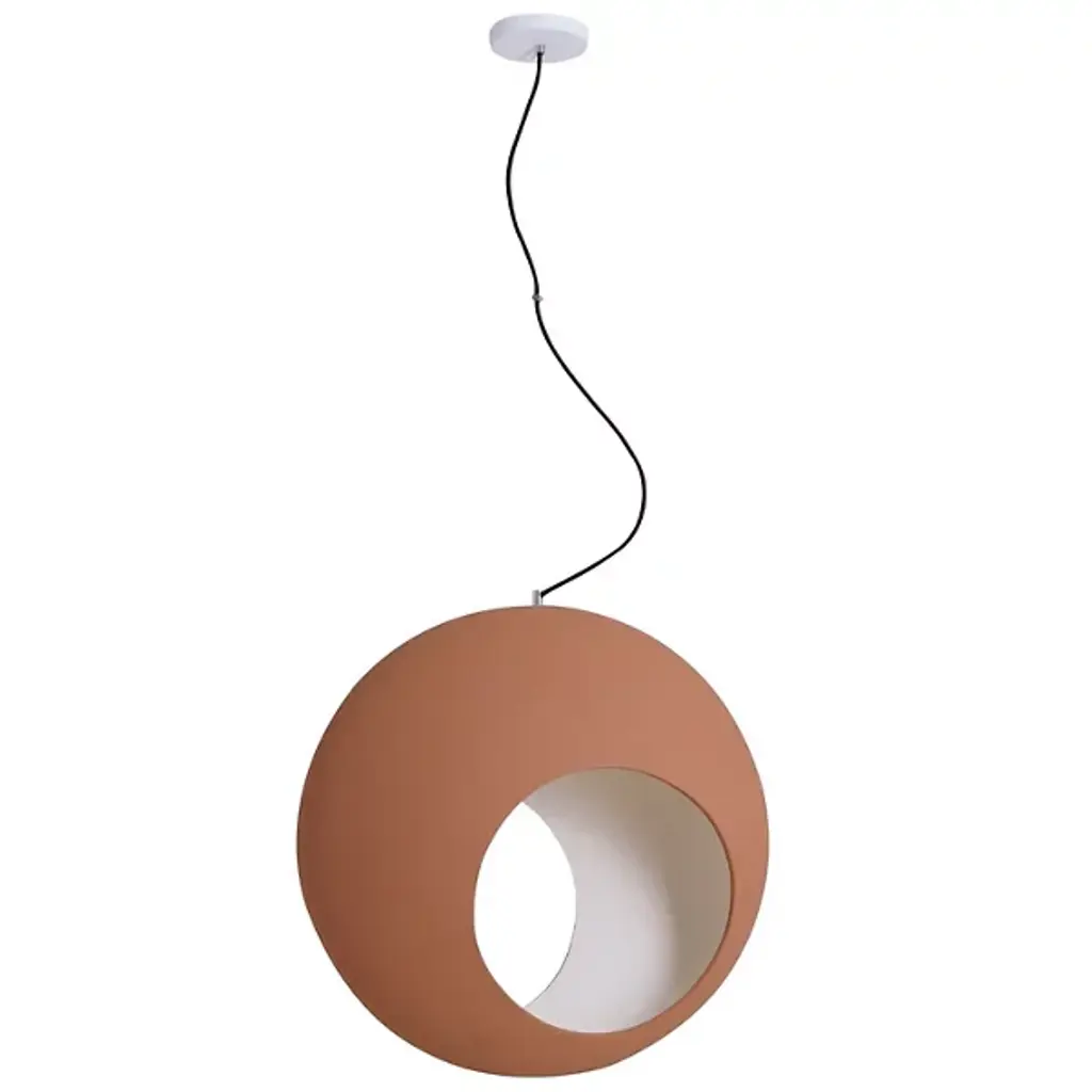 The Lua Pendant from Geo Contemporary is a celestial wonder brought down to earth. Its spherical form evokes the moon, with a crescent-shaped cutout. This pendant's clean, geometric design makes it a standout piece in any room. When illuminated, it casts a soft, diffused glow through its opening, creating an ambient atmosphere reminiscent of moonlight. Its substantial size makes it an ideal centerpiece for dining rooms, entryways, or living spaces. The Lua Pendant transforms your space into a nocturnal paradise, even in broad daylight.