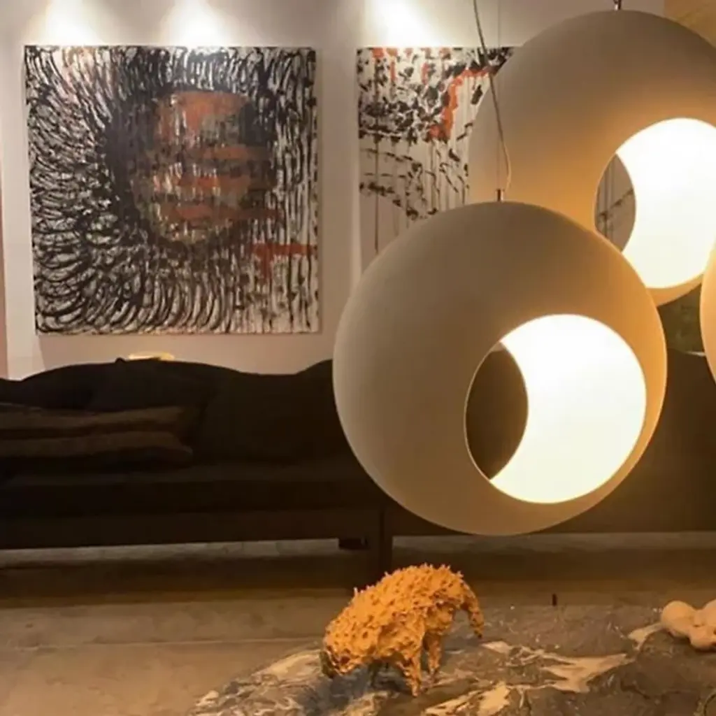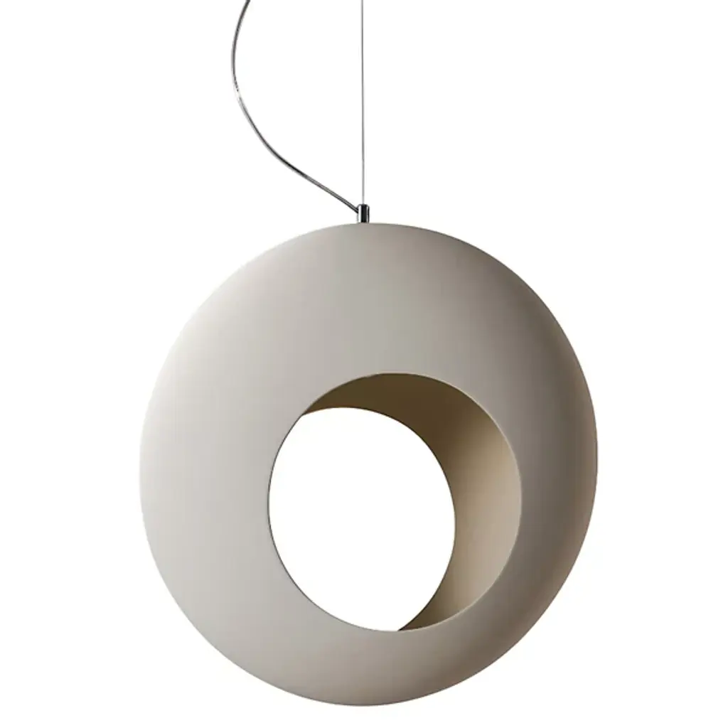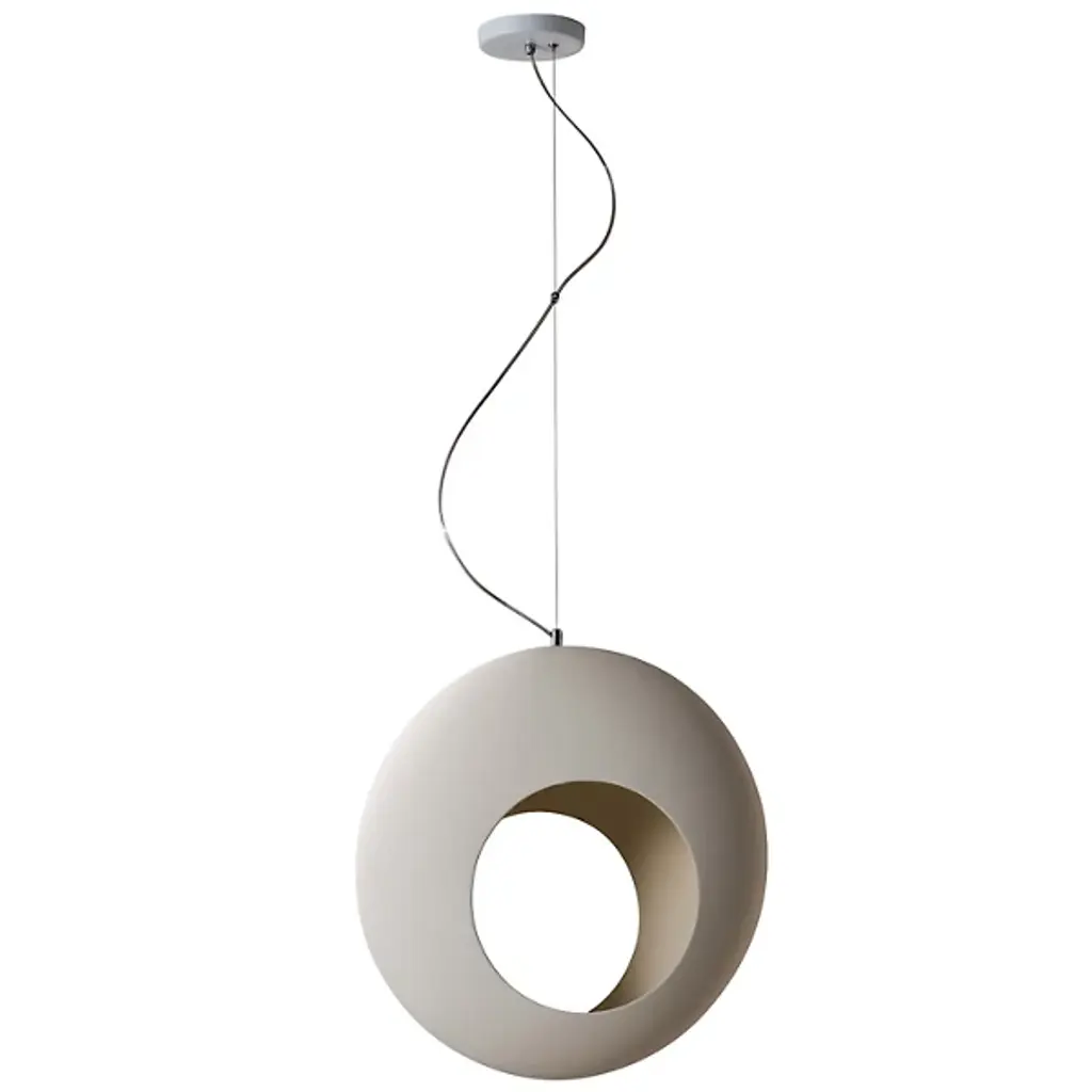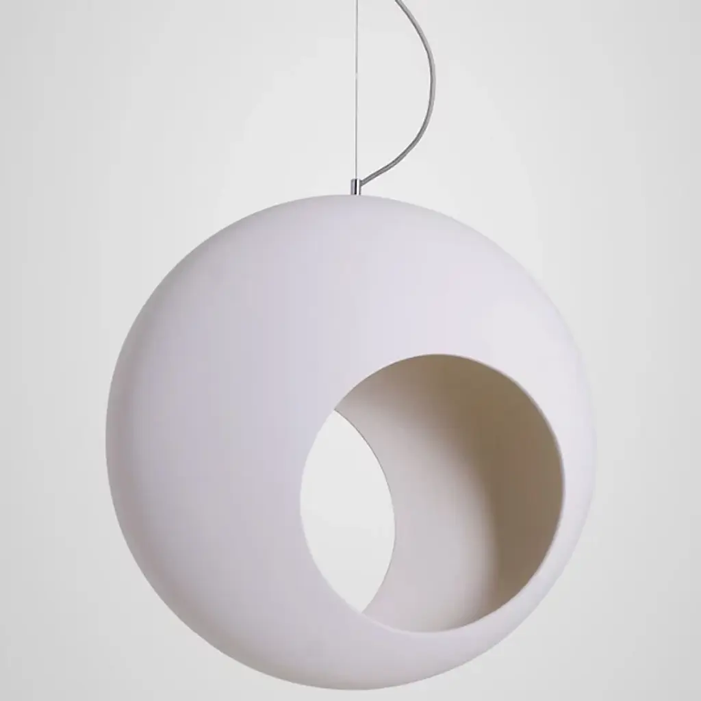 The Lua Pendant from Geo Contemporary is a celestial wonder brought down to earth. Its spherical form evokes the moon, with a crescent-shaped cutout. This pendant's clean, geometric design makes it a standout piece in any room. When illuminated, it casts a soft, diffused glow through its opening, creating an ambient atmosphere reminiscent of moonlight. Its substantial size makes it an ideal centerpiece for dining rooms, entryways, or living spaces. The Lua Pendant transforms your space into a nocturnal paradise, even in broad daylight.