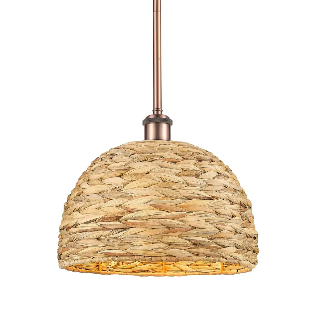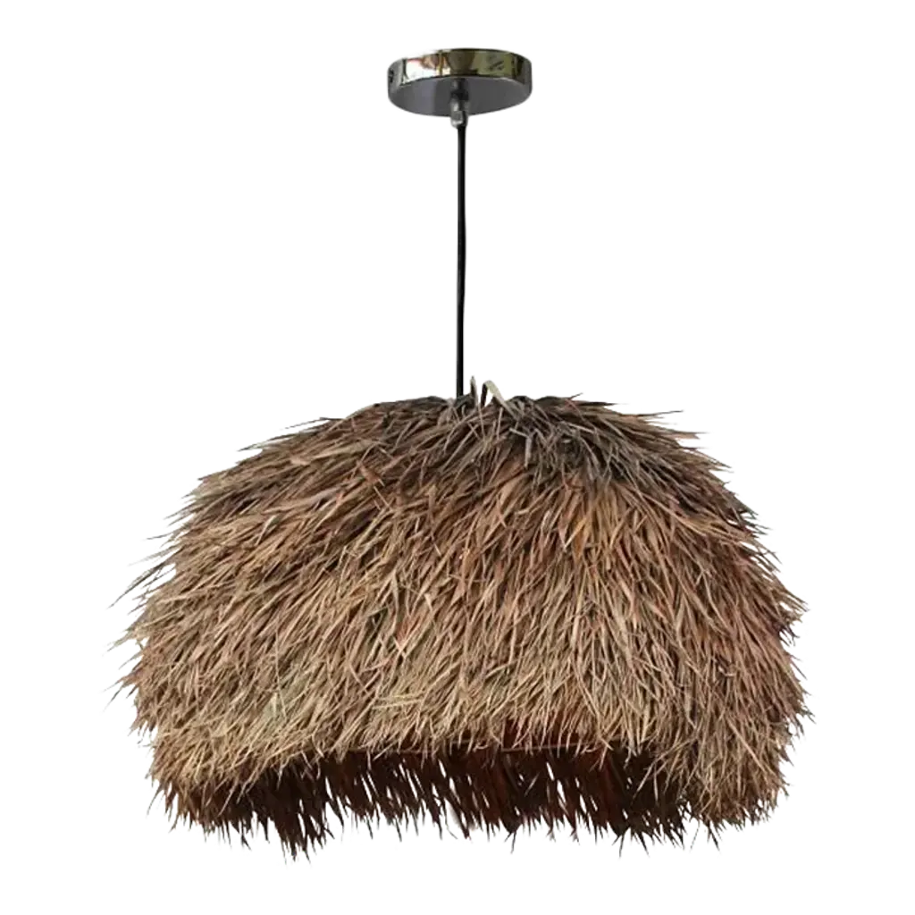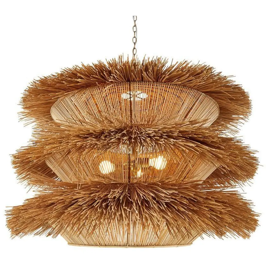 The Lua Seagrass Coastal Pendant Light Fixture adds an earthy and playful touch to any space. Made from natural seagrass, the dome-shaped shade boasts a warm color palette. Its raw and unfinished state highlights the material's authenticity, making this pendant light an eye-catching and natural addition to your interior design. Playful texture and neutral color combine perfectly in the this Lua Seagrass Coastal Pendant Light. A classic dome-shaped shade is transformed via layer upon layer of natural fiber in warm shades of brown, yellow, and light green that complements your interior. The seagrass remains in its raw, unfinished state, showcasing its natural beauty and texture. This choice celebrates the authenticity of the material and adds an earthy dimension to the lamp's aesthetic. Lua Seagrass Coastal Pendant Light Fixture Features: Dimensions: 33" 22" H Natural Seagrass Hanging pendant light Neutral brown, yellow, and light green