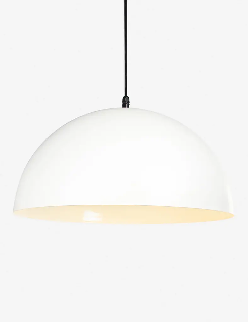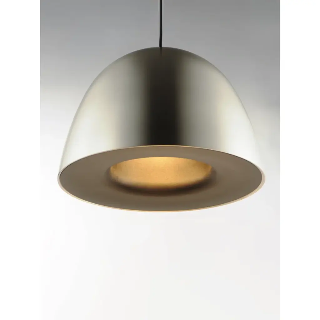 The Lucci LED Pendant from Oxygen Lighting offers a clever, curving simplicity to large inside spaces. Ideal when employed over work surfaces like tables, desks, or kitchen counters, the clean contemporary design uses a stepped, circular canopy to secure a slender, strong cable that descends to bright, energy-efficient LED lamping integrated into a sleek dome shade of aluminum. The lamping is adroitly gentled using two methods: a flat acrylic diffuser set into the top of the dome just below the lamping and by the dome itself, which blocks direct light to the sides, focusing a mix of soft downlight and reflected radiance through its open base.