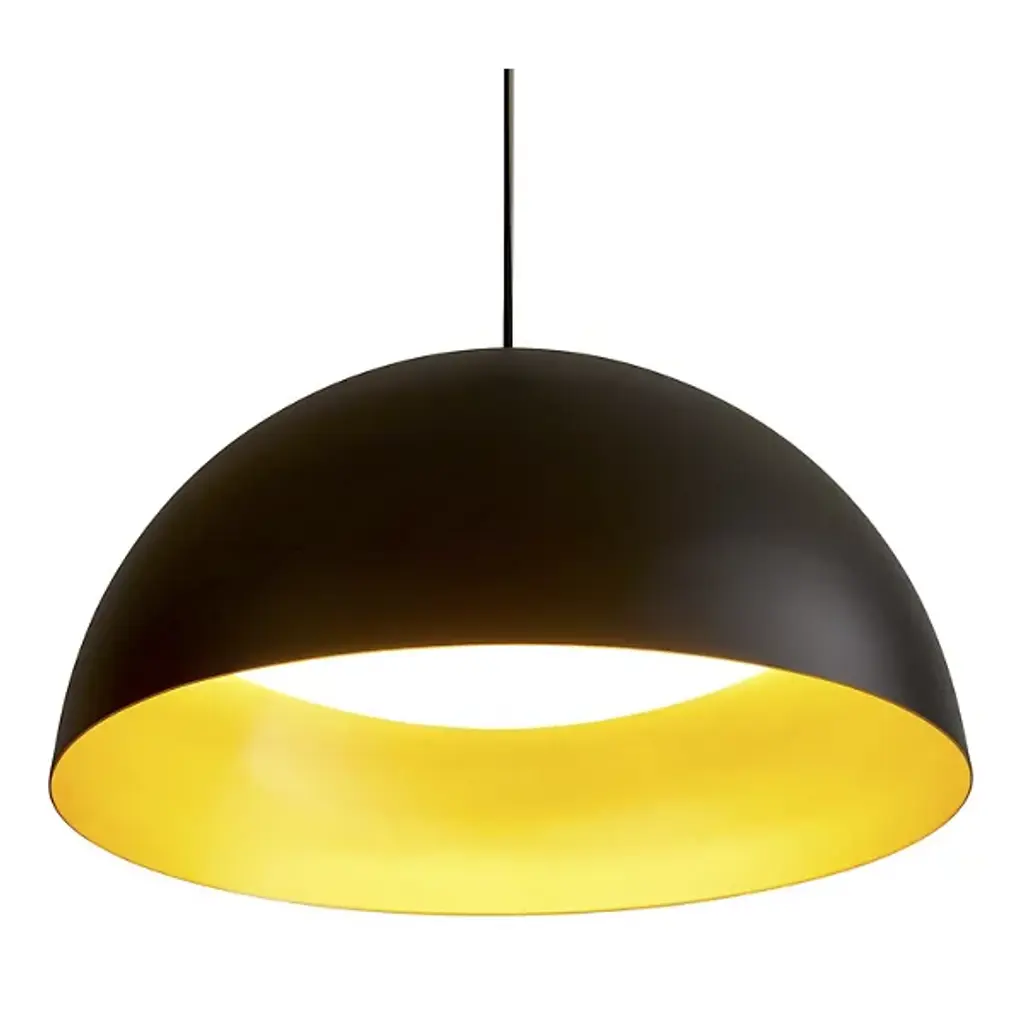 The Lucci LED Pendant from Oxygen Lighting offers a clever, curving simplicity to large inside spaces. Ideal when employed over work surfaces like tables, desks, or kitchen counters, the clean contemporary design uses a stepped, circular canopy to secure a slender, strong cable that descends to bright, energy-efficient LED lamping integrated into a sleek dome shade of aluminum. The lamping is adroitly gentled using two methods: a flat acrylic diffuser set into the top of the dome just below the lamping and by the dome itself, which blocks direct light to the sides, focusing a mix of soft downlight and reflected radiance through its open base.