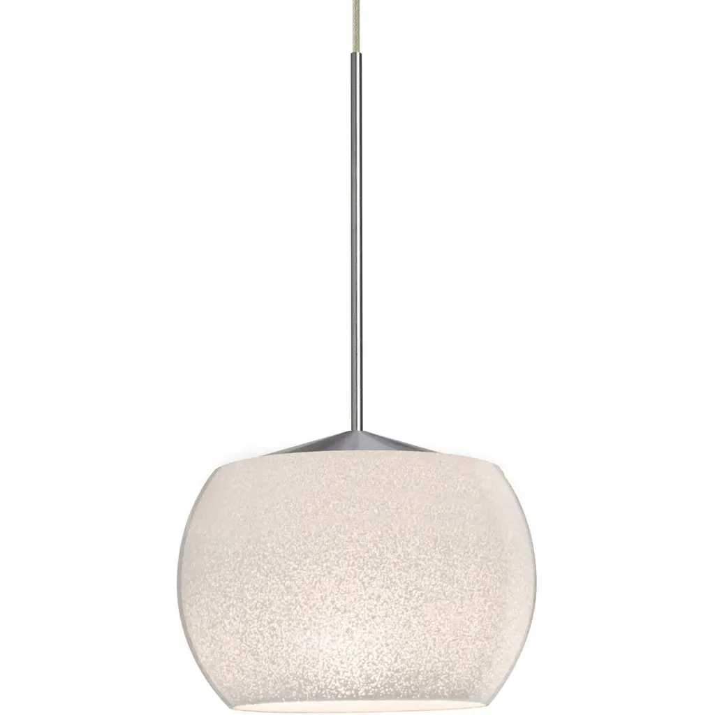 The Lucia is a curvy bell-bottomed shape, that fits nicely into any contemporary design. Our Opal glass is a soft white cased glass that can suit any classic or modern decor. Opal has a very tranquil glow that is pleasing in appearance. The smooth satin finish on the clear outer layer is a result of an extensive etching process. This blown glass is handcrafted by a skilled artisan, utilizing century-old techniques passed down from generation to generation. The cable pendant fixture is equipped with a 10' silver aircraft cable and AWM cordset, and a dome monopoint canopy. These stylish and functional luminaries are offered in a beautiful Satin Nickel finish.