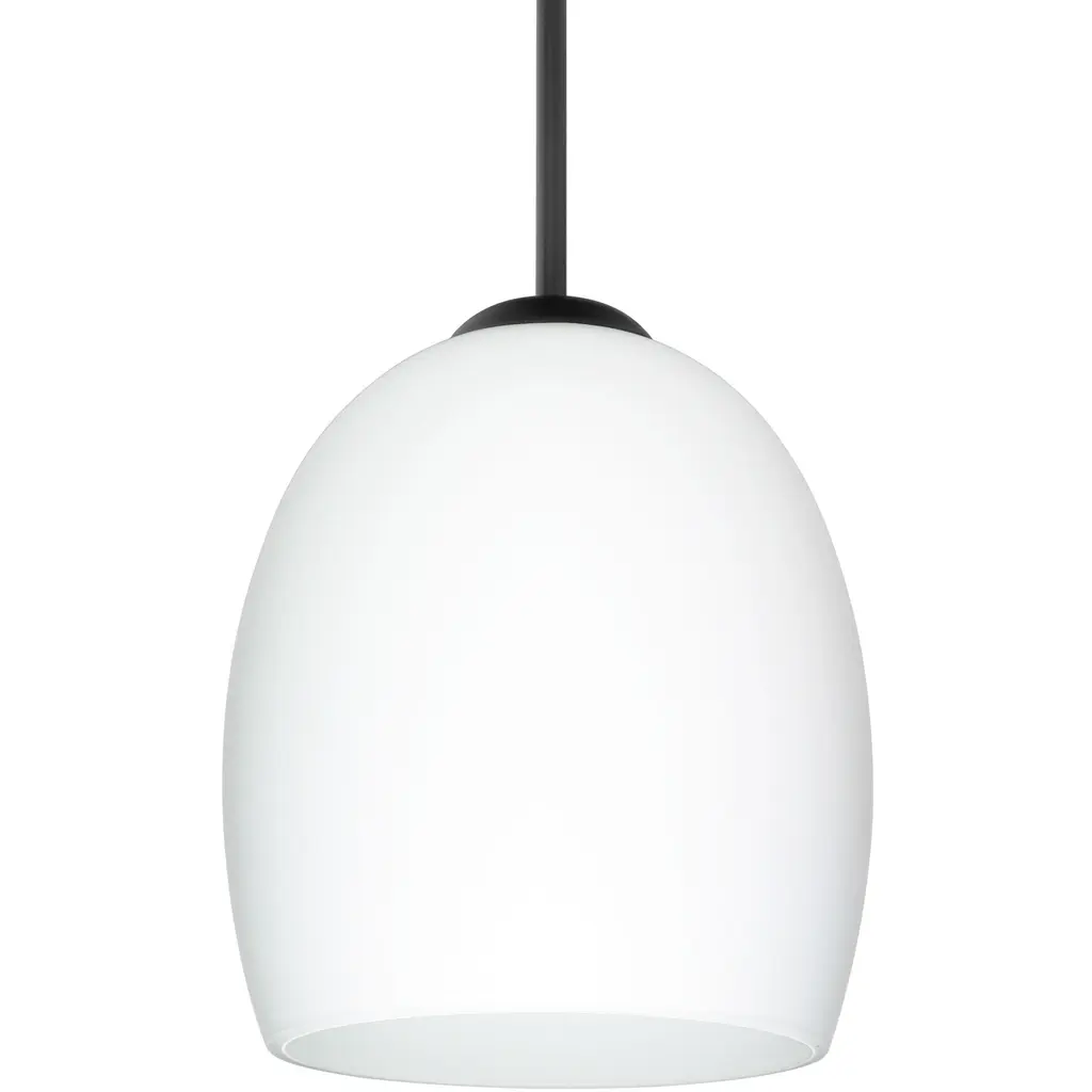 The Lucia is a curvy bell-bottomed shape, that fits nicely into any contemporary design. Our Opal glass is a soft white cased glass that can suit any classic or modern decor. Opal has a very tranquil glow that is pleasing in appearance. The smooth satin finish on the clear outer layer is a result of an extensive etching process. This blown glass is handcrafted by a skilled artisan, utilizing century-old techniques passed down from generation to generation. The cable pendant fixture is equipped with a 10' silver aircraft cable and AWM cordset, and a dome monopoint canopy. These stylish and functional luminaries are offered in a beautiful Black finish.