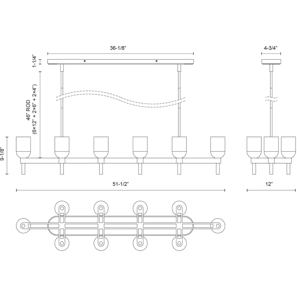 Lucian 10 Light 51.5 Inch Vintage Brass Linear Pendant Ceiling Light In Clear Glass
