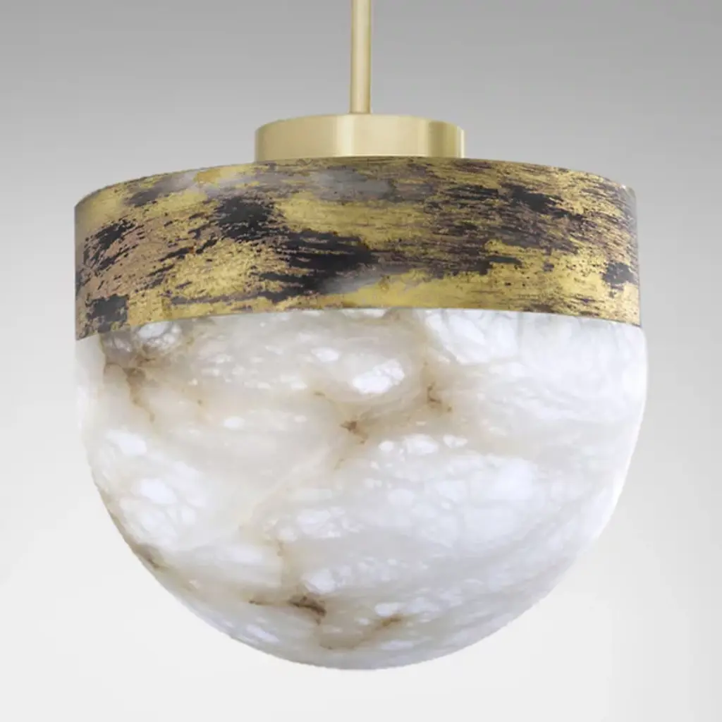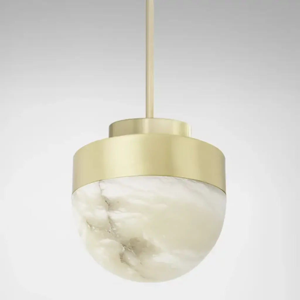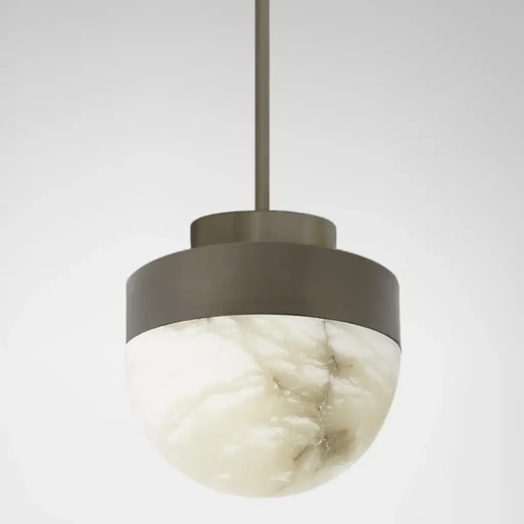 Drawing inspiration from the casual elegance of Parisian brasseries and wondrous charm of decorative snowdomes. Cover your room with the dream-like luminosity of the Lucid Pendant from CTO Lighting. Creator Michael Verheyden’s caring, thoughtful design approach pushes him to create refined pieces that blend serene shapes and meandering materials. Verheyden keeps the piece on a straight line with a sleek down rod suspension. A stepped metal structure defines the pendant’s sculptural character. Honed into a dome, the bottom diffuser’s alabaster construction sends the eyes moving with its meandering accents and color. Leaving behind an otherworldly silhouette, the light generates an intimate down glow.