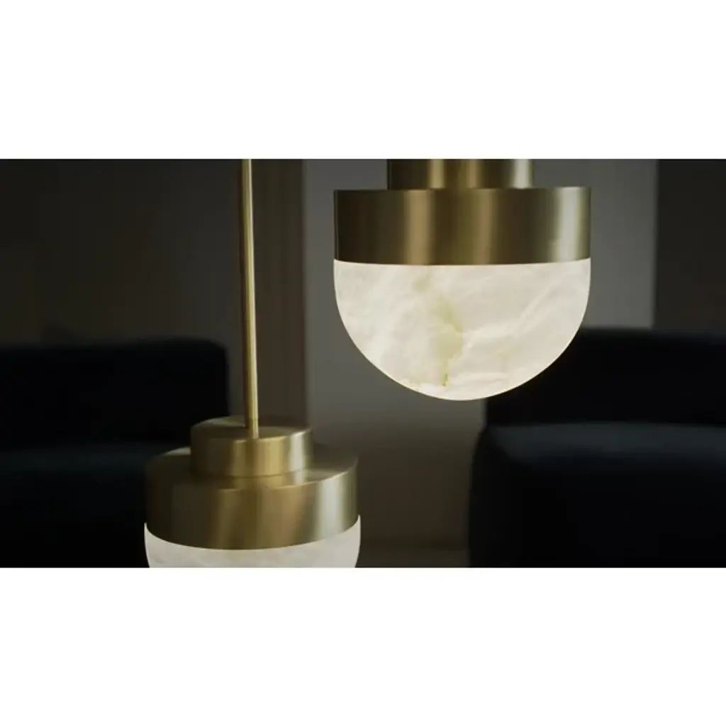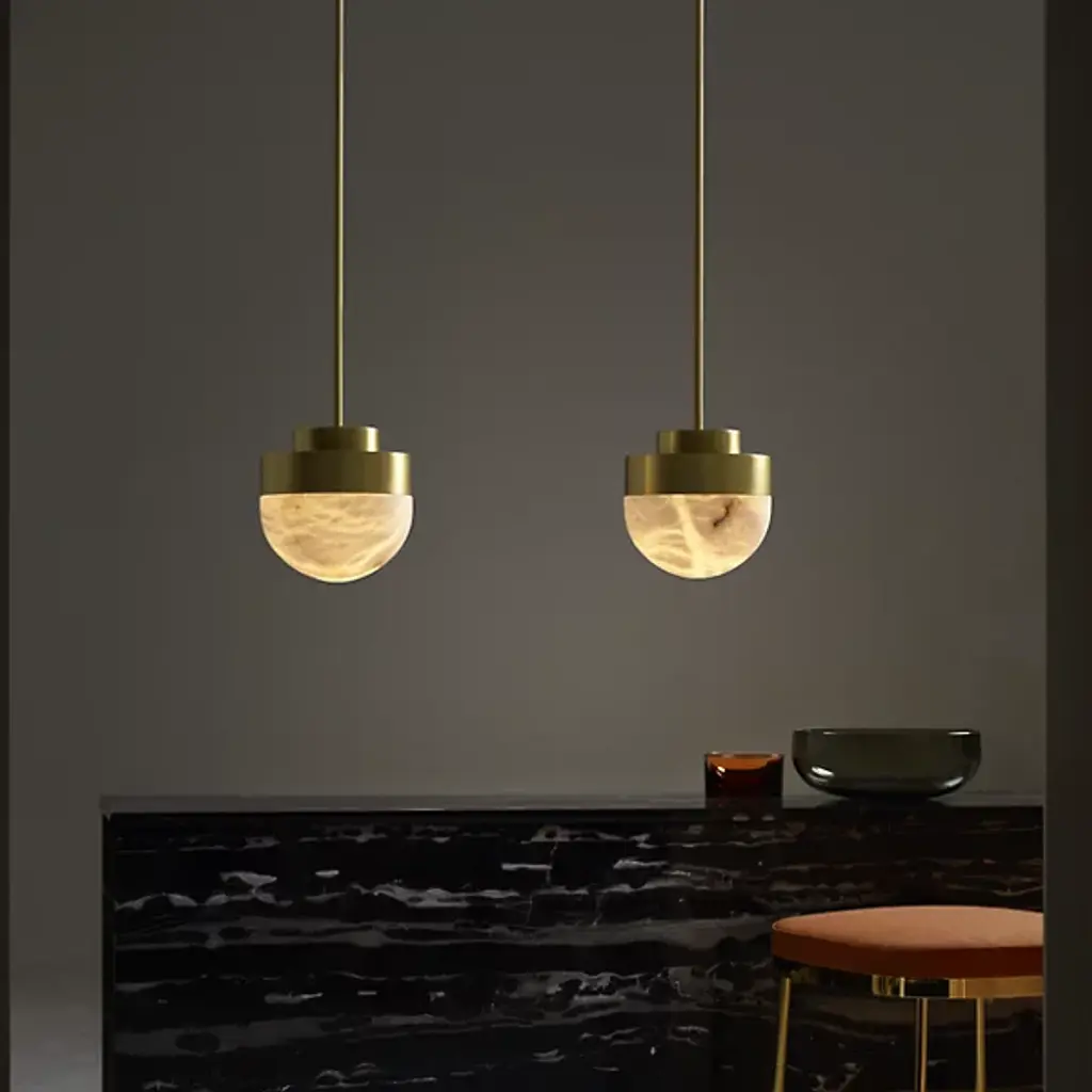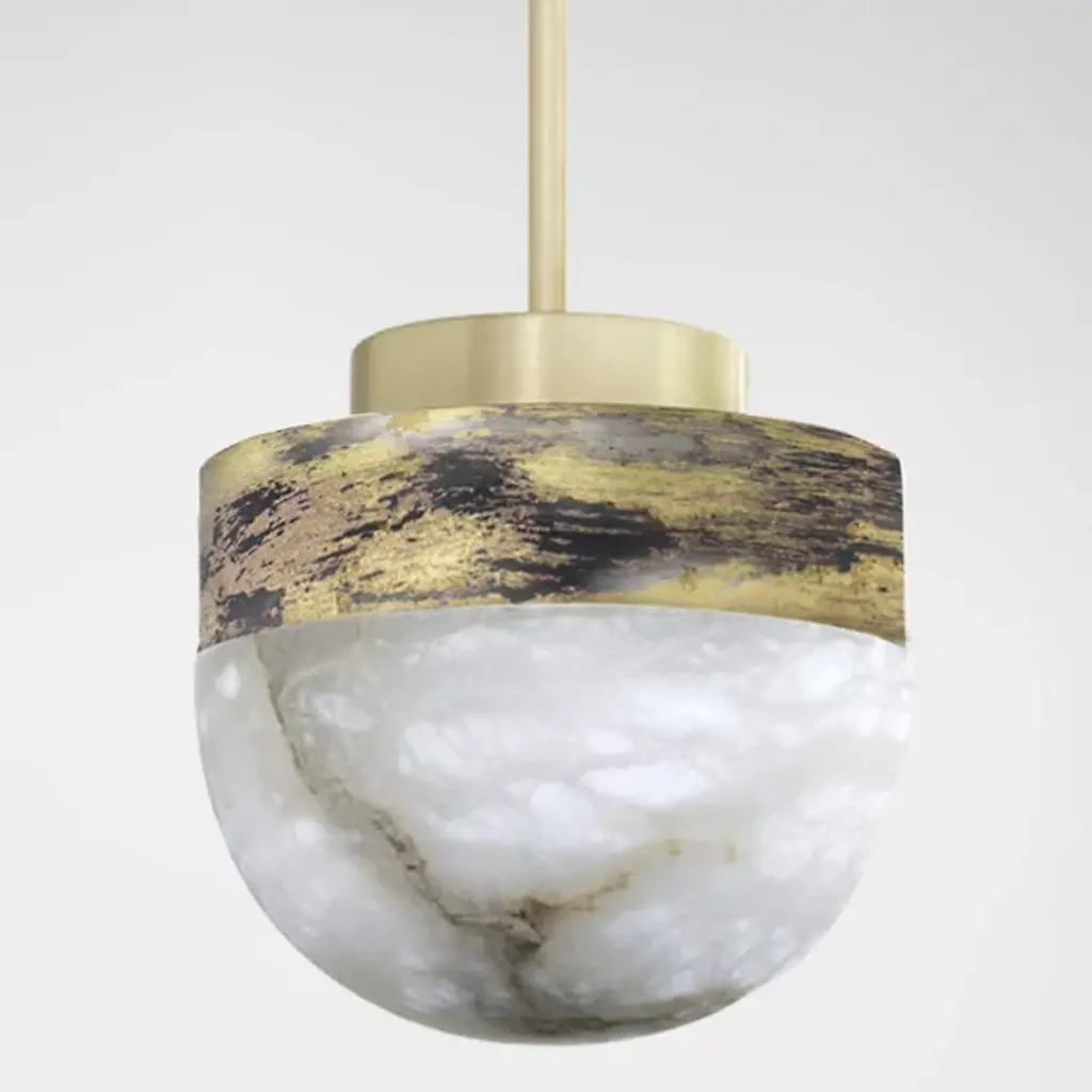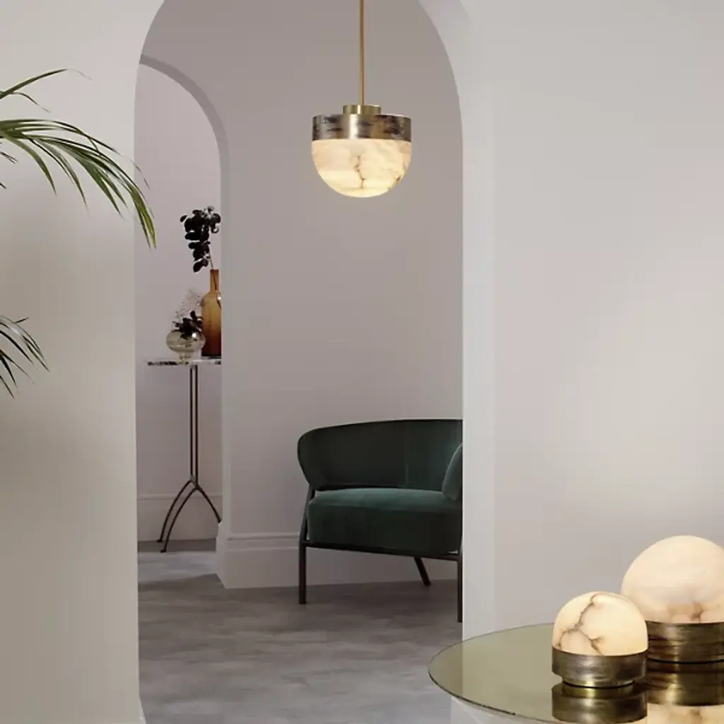Drawing inspiration from the casual elegance of Parisian brasseries and wondrous charm of decorative snowdomes. Cover your room with the dream-like luminosity of the Lucid Pendant from CTO Lighting. Creator Michael Verheyden’s caring, thoughtful design approach pushes him to create refined pieces that blend serene shapes and meandering materials. Verheyden keeps the piece on a straight line with a sleek down rod suspension. A stepped metal structure defines the pendant’s sculptural character. Honed into a dome, the bottom diffuser’s alabaster construction sends the eyes moving with its meandering accents and color. Leaving behind an otherworldly silhouette, the light generates an intimate down glow.