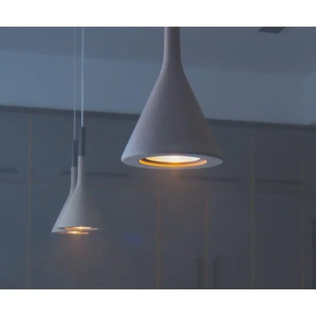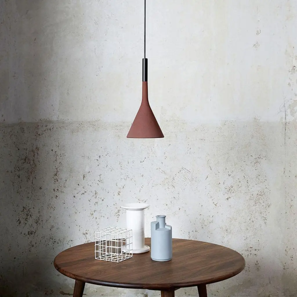 Lucidi & Pevere ‘Aplomb’ concrete pendant lamp in brick red for FoscariniDesigned by Lucidi & Pevere and produced by Foscarini, the Italian lighting firm founded in Venice on the legendary island of Murano, where generations of master craftsman have skillfully used their unmatched imagination and skill to create the most innovative works of light into the modern era. The ‘Aplomb’ pendant is fabricated using many of the same artisanal techniques perfected over centuries, with thoughtful attention to detail, use of high quality materials and incomparable rigor and passion, resulting in a lamp that conveys extreme elegance and formal simplicity. Expertly crafted with an exclusively formulated concrete, the 'Aplomb' pendant creates a downward directed light which allows it to be used on its own, in line with multiple pendants or even as a composition at different heights.Price per item. In stock and available in unlimited quantities. Available in white, olive green, sand yellow, brick red, maroon, concrete grey. Also available in a larger size for an additional cost, please see our separate listings. This listing is for the 'Aplomb' pendant in brick red.In stock lead time 2 weeks. Out of stock can add 12 weeks or more. Please note that inventory availability can change without notice. Please contact us for current lead times prior to placing time sensitive orders.Accommodates a MR16 GU10 bulb max 9 watts (bulb not included). Suspended by clear power cable up to 122" in length with a black ABS canopy. Canopy decentralization kit for up to 9 pendants available for an additional cost. This lamp is ETL listed. Not UL listed, but recommended UL listing possible from an authorized 3rd party vendor for an additional fee. Contact us for more information.All sales final.