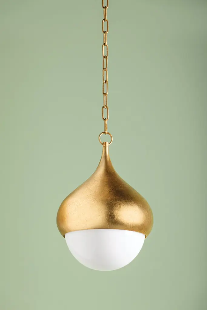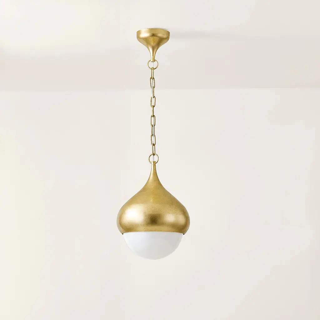 Inspired by an acorn growing on a branch, Luciel features gently curved forms and a luxurious Vintage Gold Leaf finish. The refined, jewelry-like aesthetic of the fixture is elongated to create a surreal, otherworldly representation of nature. Luciel is available as a sconce, chandelier, and pendant.