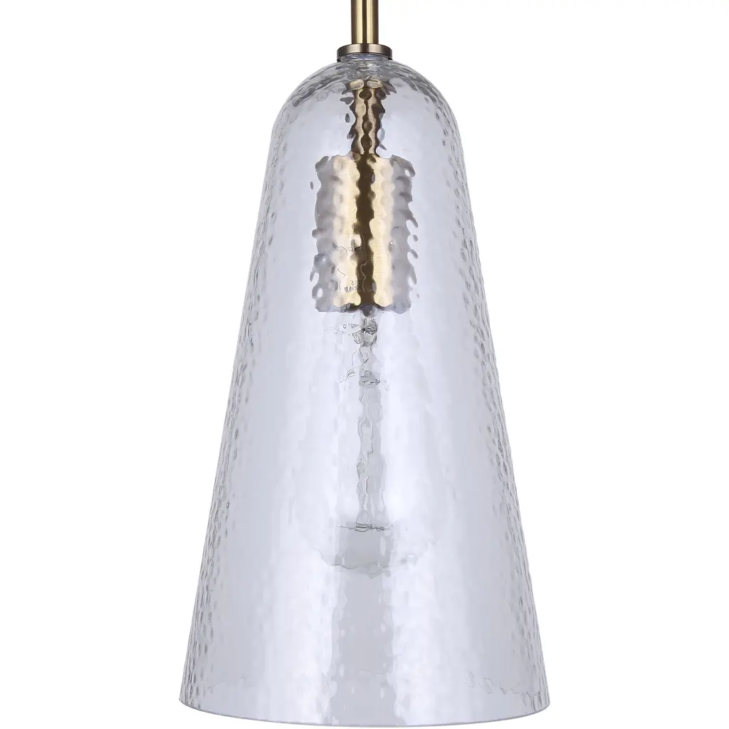 The LUISA 1-Light Gold Pendant redefines elegance with its mid-century modern flair and hammered glass shade. Its warm gold finish and timeless design make it a stunning focal point for any room, effortlessly blending style and function. Designed to house a single 60W Type A bulb (not included), it offers soft, ambient illumination ideal for dining areas, kitchens, or living spaces. Adjustable from 19 to 61 inches in height, this pendant adapts seamlessly to various ceiling heights and layouts. Whether hung solo or in a series, the LUISA pendant adds a sophisticated touch to your home décor.