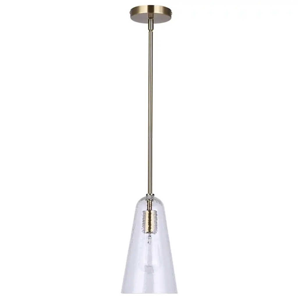 The Luisa Mini Pendant from Canarm features a tapered glass shade that directs light downward while maintaining ambient illumination. The adjustable rod system adapts to different ceiling heights. This pendant excels above kitchen islands, dining tables, or in clustered arrangements. The Easy Connect mounting hardware simplifies installation. Its streamlined form avoids unnecessary ornamentation, letting the quality materials and craftsmanship speak for themselves. The glass shade creates pleasing light patterns while maintaining optimal task lighting. An excellent choice for spaces requiring both purpose and refinement.